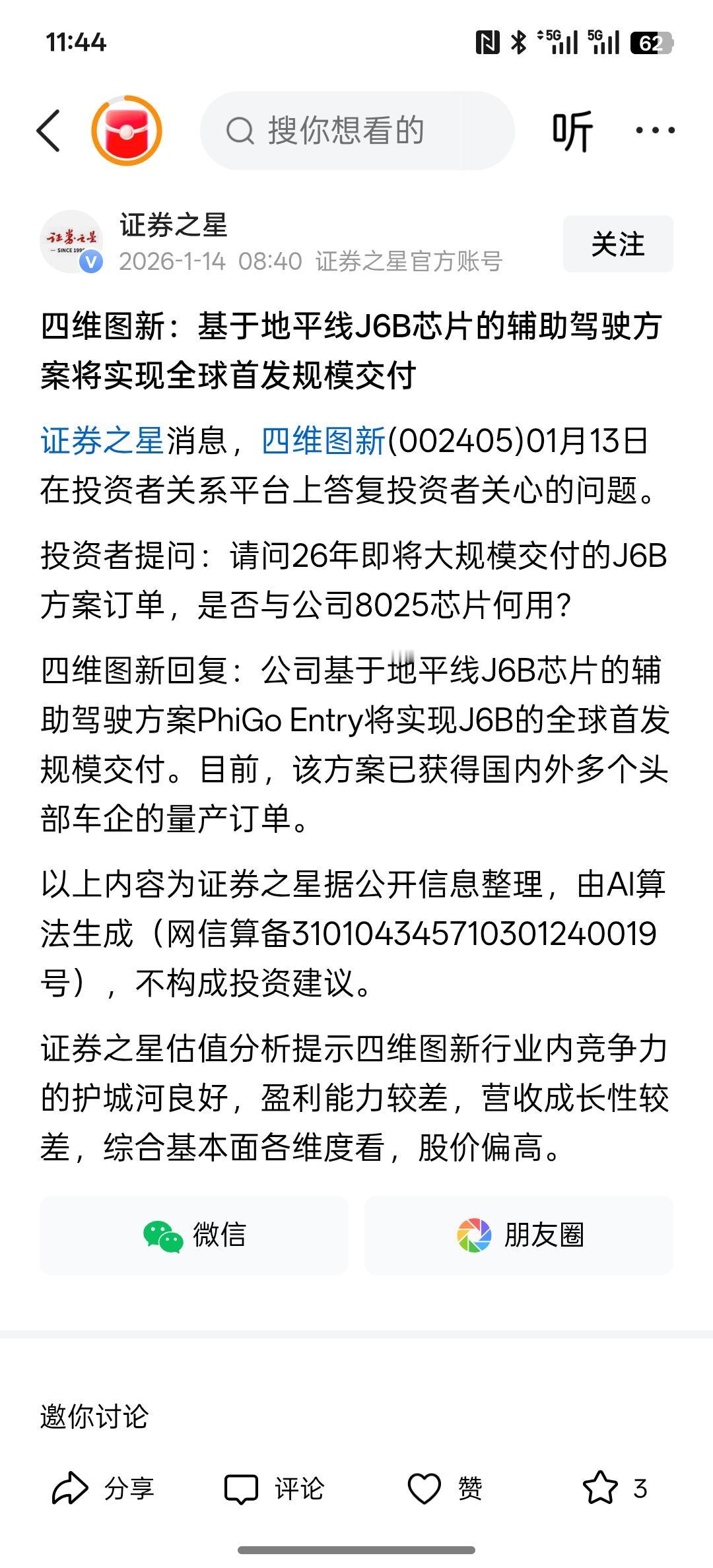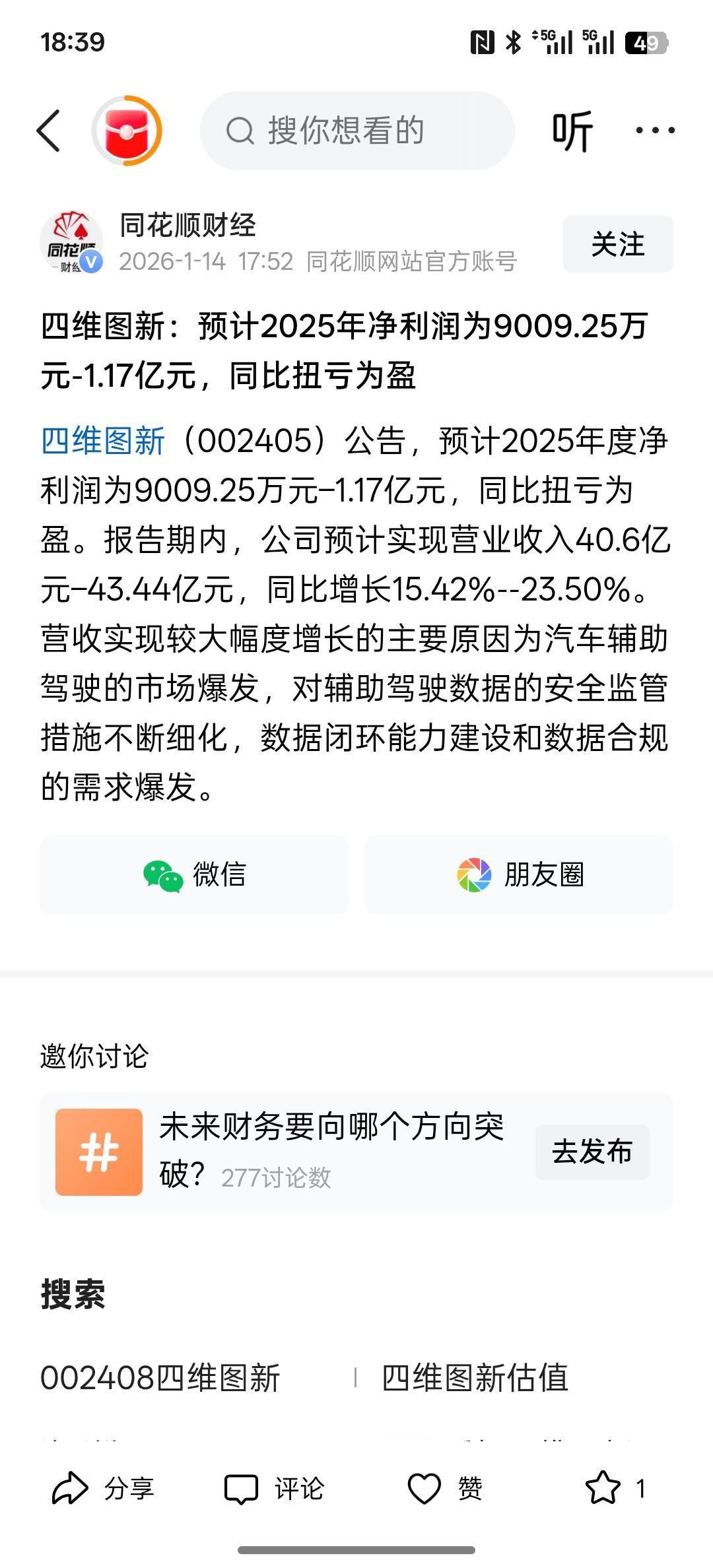四维图新2025年扭亏为盈,利润增长100%以上,四维图新:公司智驾新鉴智团队2025年下半年获得的订单将在2026年进入量产阶段。 根据目前来看!整体业务还算非常不错,在智能驾驶方面得到了极大的发展!在自家方面,与多家公司进行合作,出货量达到600万套! 同样在车规芯片的发展也取得了巨大的突破!整体公司发展有非常大的前景! 因为公司转型在智能化时代AI时代,智能驾驶技术的时代,整体利润大幅上涨!