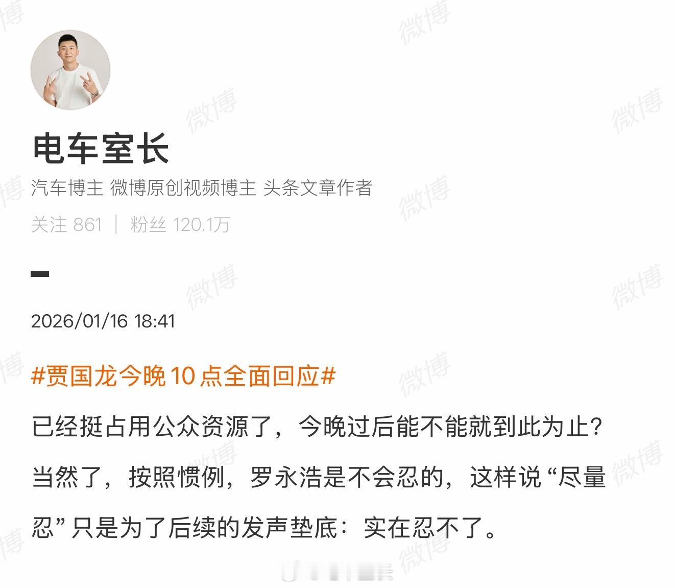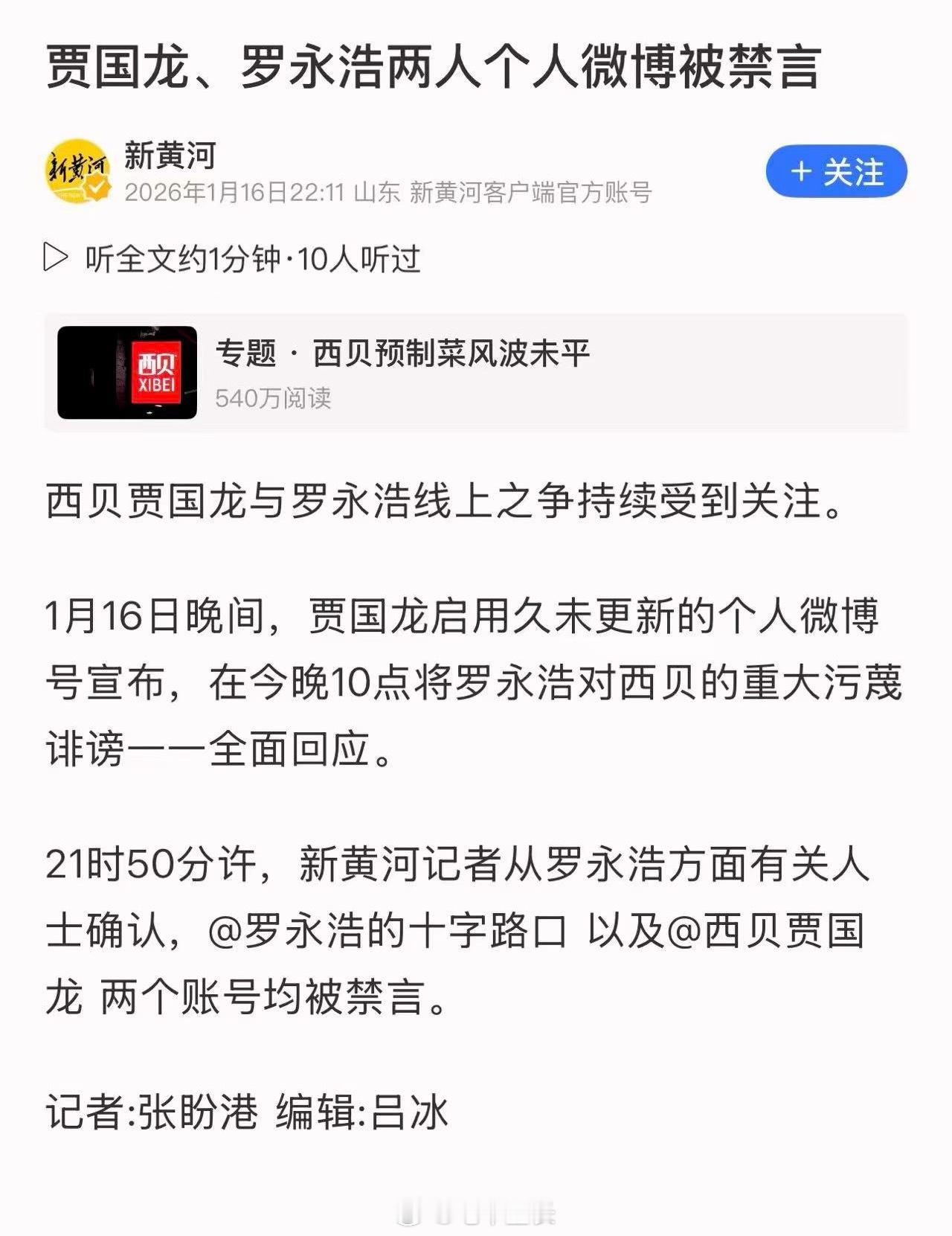 罗永浩 贾国龙双双被禁言了?起飞前我就说了,真的挺占用公共资源了。这事最后辩来辩去变成了个人恩怨,个人恩怨似乎就应该私下解决。