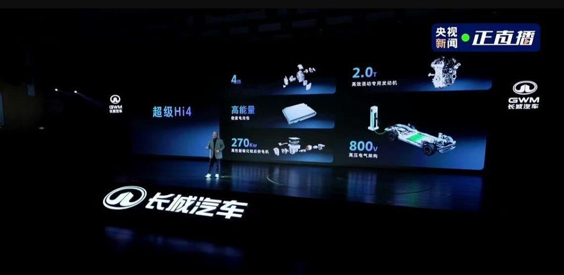 长城Hi4迎来了进化变成了超级Hi4:搭载800V高压电气架构,拥有4档混动专用变速箱和2.0T高效混动专用发动机和高能量密度电池包。长城归元是汽车界的活字印刷术长城汽车归元平台发布会