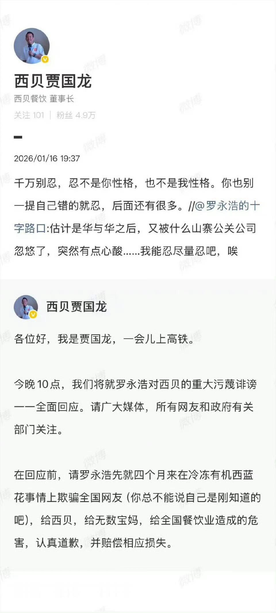 罗永浩最开始就吐槽了一下西贝的菜不好吃还贵,这难道不是消费者的基本权利吗?然后贾老板就一通乱拳,直到关了100多家店,都快把自己捶死了,还没完……热点现场 贾国龙今晚10点全面回应