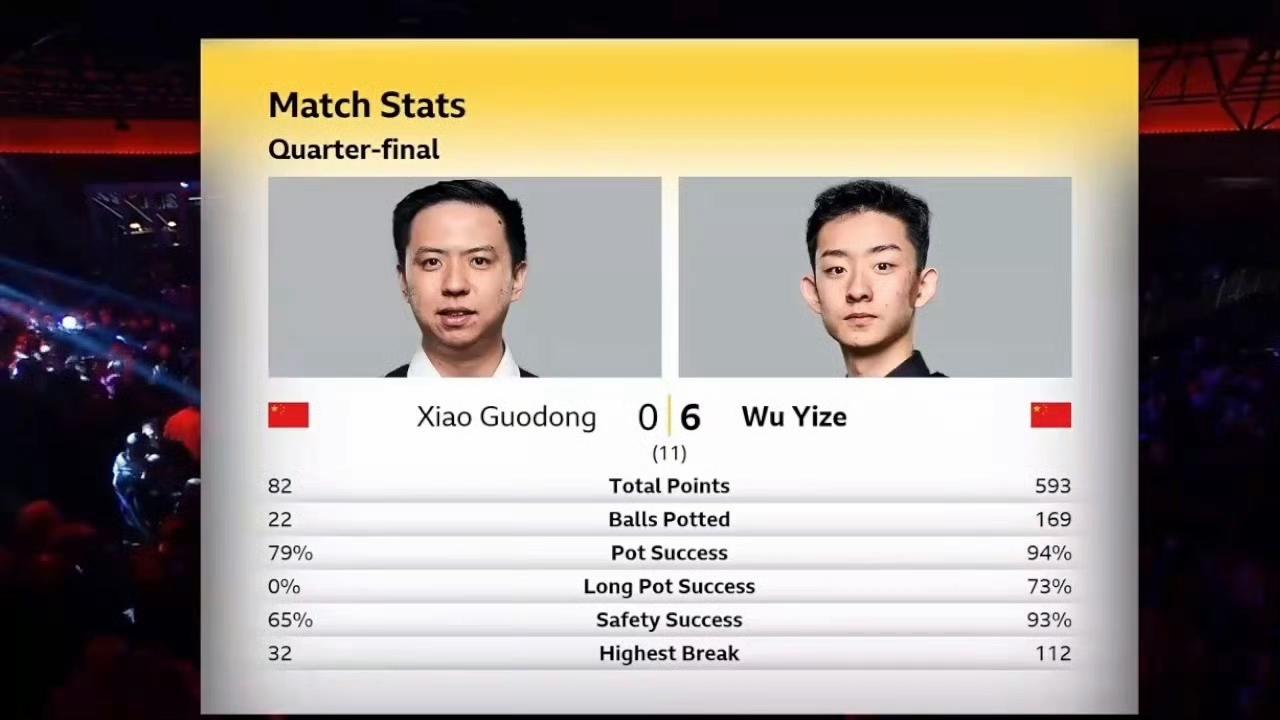 想到了吴宜泽会赢,但没想到比分更是吓人!《老肖为我煮鸡蛋面,我为老肖剃光头》 今晚的大师赛德比战,吴宜泽全场轰出单杆112、93、60、84、97分,连拿6局,直接以6-0力克好友肖国栋,首次晋级大师赛四强。 肖主播擅长煎蛋煮面,吴宜泽擅长送蛋,前有送特鲁姆普零蛋,现在又送肖主播零蛋。丁俊晖也安心了,至少他还赢了两局。 吴宜泽能晋级四强,原因还有:他爸爸来到比赛现场,而且还为他处理了一下皮头。