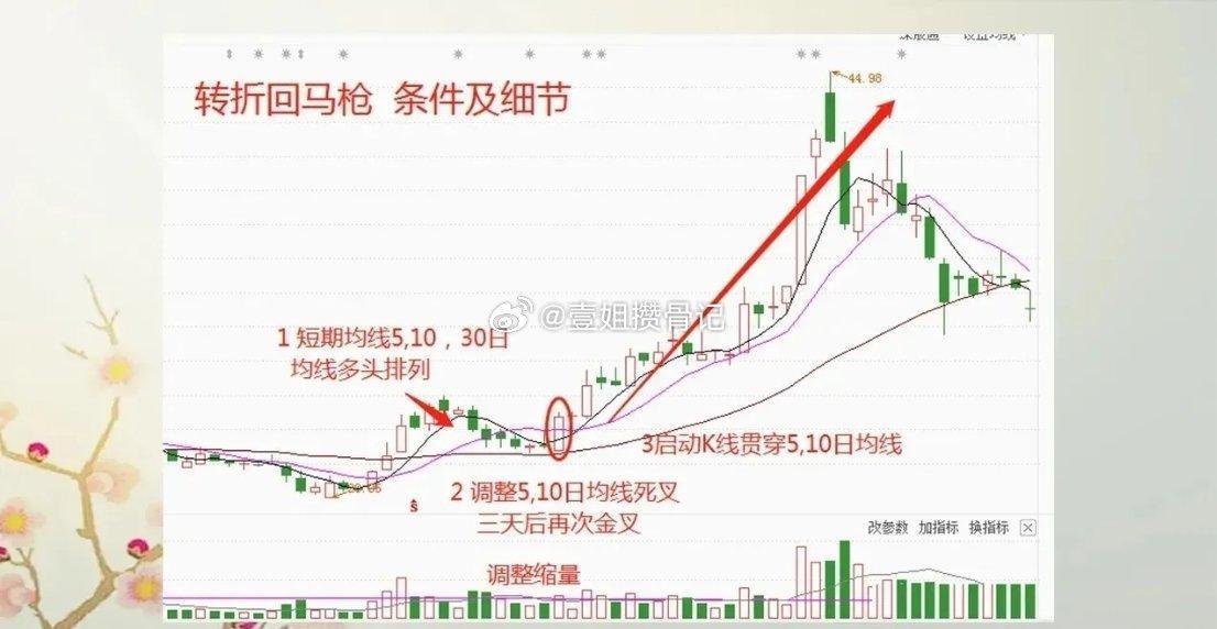 股价运行轨迹突破回踩转折回马枪的条件与细节股价运行中,“涨停回马枪”的条件和细节很关键。很多散户像我早年一样,看到涨停就追,结果次日回调被套,割肉后股价又主升,彻底踏空。先说条件,当股价运行到前期高点附近(离前期高点10%以内),或面临筹码密集区时,容易出现涨停突破走势。因为接近前期高点,主力会试盘减轻套牢盘抛压,然后涨停突破。细节方面,“涨停回马枪”不是追涨停,而是捕捉主力涨停启动、洗盘结束后的二次拉升机会。主力涨停后会回调洗盘清理浮筹。核心是识别主力洗盘结束信号,当回调触及关键位置,就是“回马枪”出击时机,值得收藏!