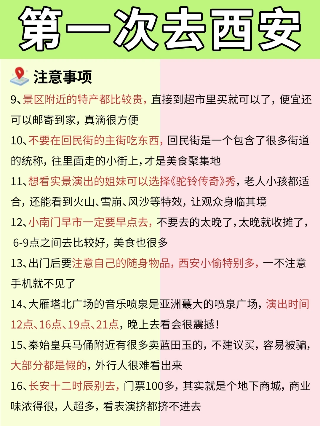 🏠住宿指南:可以住在钟鼓楼、永宁门附近、小寨大雁塔附近、或者沿地铁线附近都可以,这样出行方便,第二天有安排兵马俑可以提前住在潼临区,方便第二天出行哦!