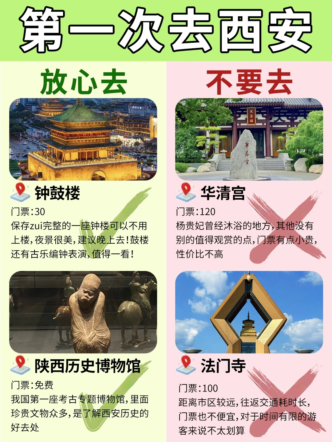 宝子们👭去了西安发现,提前做攻略真的能省一半心,为了让姐妹们少走弯路,去了几次总结了西安景点攻略,有些景点真的没必要浪费时间去‼