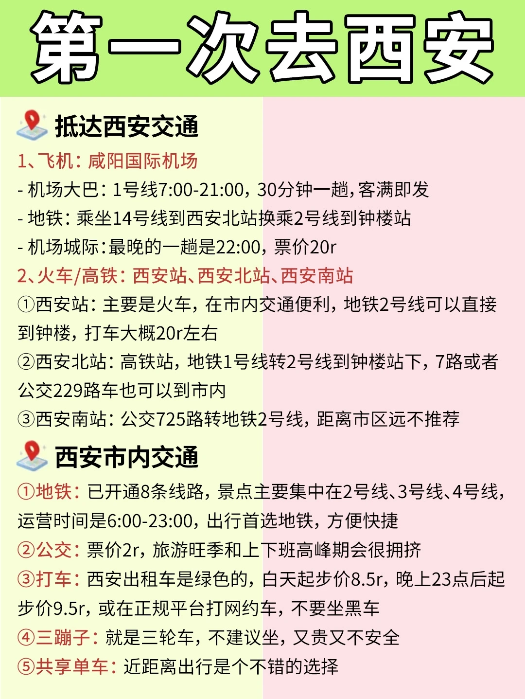 🚊交通:地铁无疑是最方便的,ZFB免费领取西安电子地铁卡扫ma乘车!地铁到不了的地方可以坐公交或者打车前往哦 (切记不要坐黑车!!)
