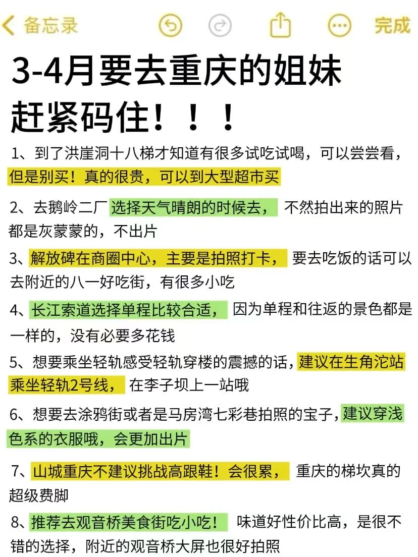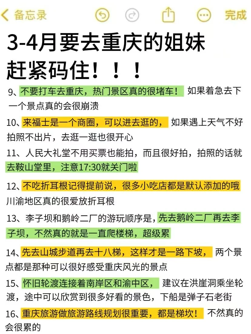 1️⃣不要打车去重庆,热门景点会很堵车,会浪费很多时间