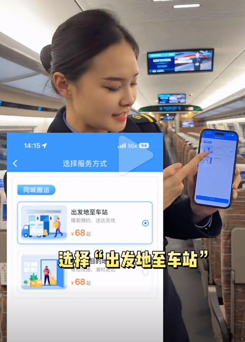 坐高铁可以不用自己扛行李了原来还要花68米突然觉得自己的行李箱也没那么重了