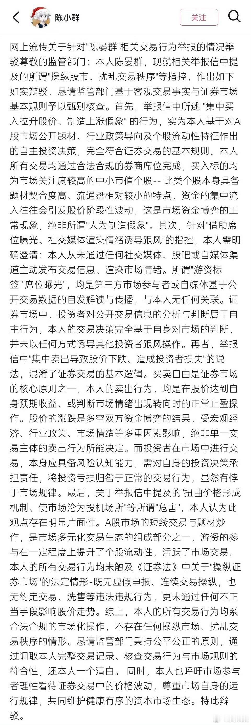 陈小群陈小群发表声明否认操纵股市,扰乱交易秩序。你怎么看?有没有被活埋中的举个爪?