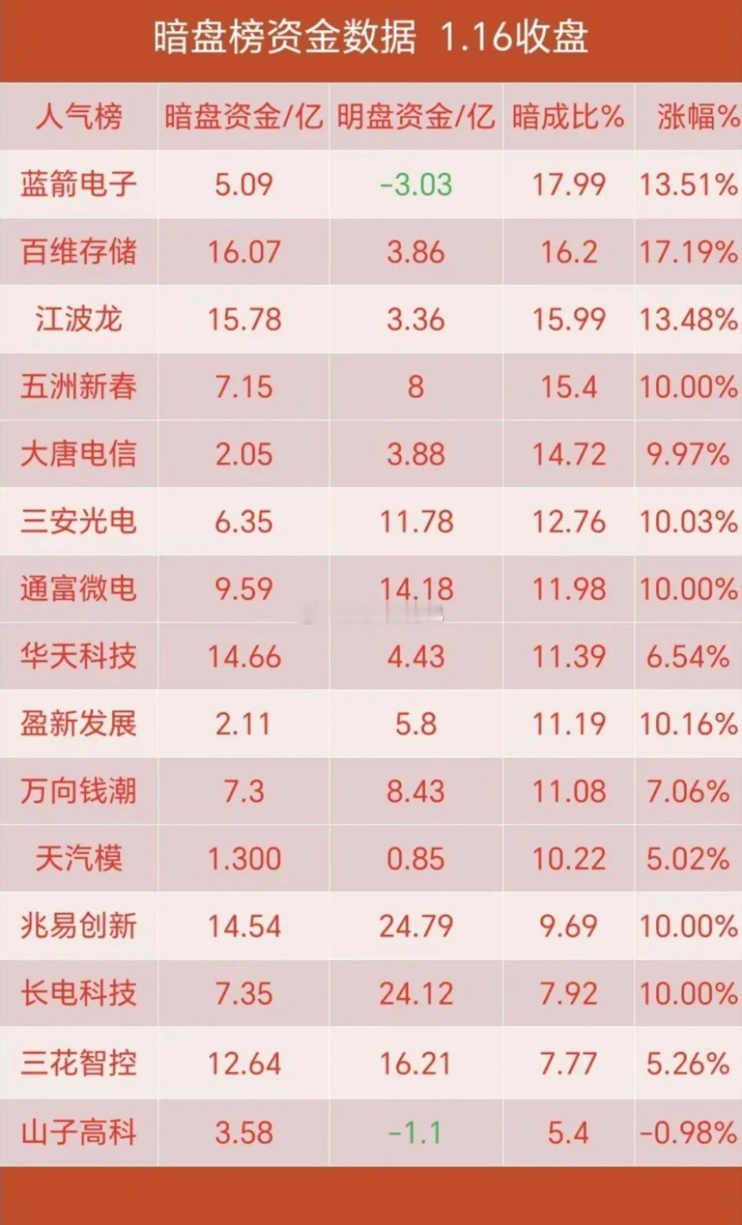 1.16周五 暗盘大资金 抢筹出逃个股榜资金抢筹:存储芯片半导体,封测服务,绿色电力,碳化硅,换电概念,人形机器人,华为海思,风电光储,小金属等。资金出逃:软件开发,互联网服务。油气油服,移动支付,人工智能AI等回调出逃!