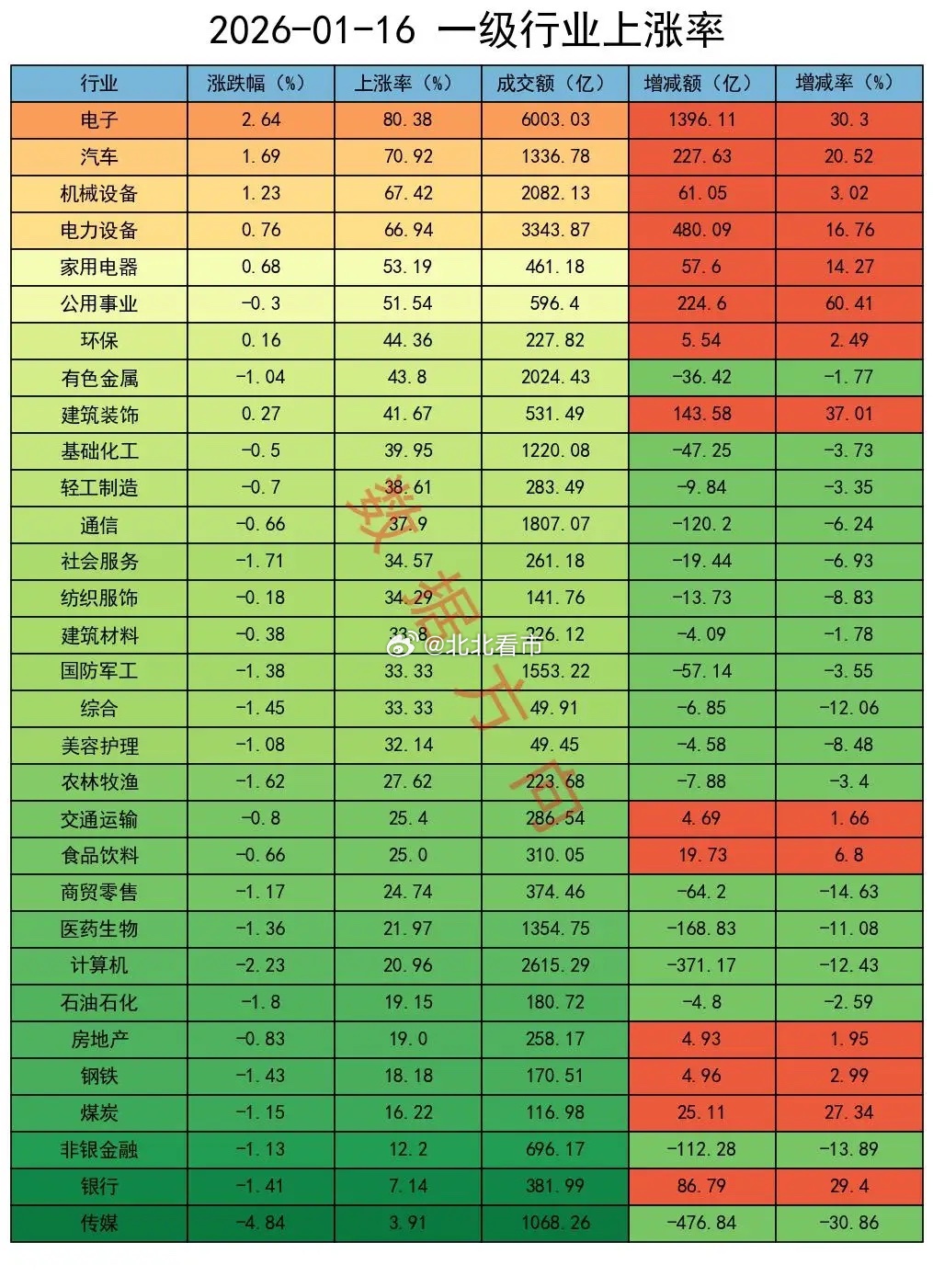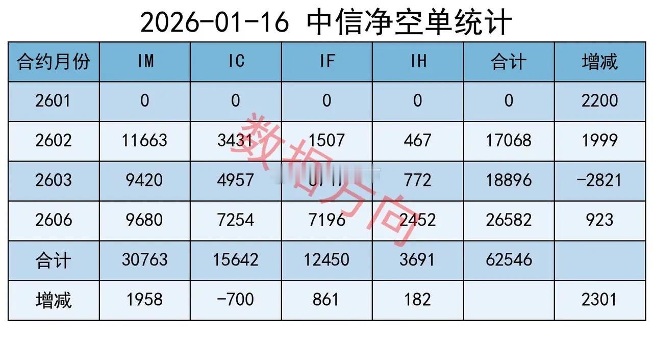 净空单超过15万!大盘高开低走,全天震荡回落,全A指数跌幅0.22%,半导体涨幅居前,汽车、机械设备、电力设备等亦有不错的表现,AI应用跌幅居前,个股上涨率43%,市场成交额较昨日增加4%。仅有科创50、中证500,两个指数上涨。中字头,跌幅1.32%,连续三天在所有宽指中表现最差。这是大盘连续调整的第4天,但从复盘数据来看,机构们不仅没有减空,反而继续大幅加空。行业电子,涨幅2.64%,个股上涨率80%,此两项数据全场最佳,大幅放量30%台积电最新财报显示,公司第四季度营收同比增长20.5%,净利润同比增长35%、环比增长11.82%,均远超市场预期,并且是连续第七个季度实现两位数增长。并且,台积电给出2026年营收再增30%的强劲指引。隔夜外盘,美股市场存储股集体大涨。伯恩斯坦昨日将闪迪的目标股价从300美元大幅上调至580美元;富国银行将闪迪的目标价从230美元上调至380美元,将西部数据的目标股价从180美元上调至260美元,将美光科技的目标价从335美元上调至410美元。汽车、机械设备、电力设备、家用电器等,一起进入榜单前5名在AI应用全线回落,大宗商品欲振乏力的情况下,资金转战高端制造。消息上,“十五五”时期,国家电网固定资产投资将达到4万亿元,创历史新高,投资总额比“十四五”时期增长40%,资金将重点用于科技创新、新型电力系统建设等方面。将初步建成主干电网、配电网和智能微电网协同的新型电网平台,跨省区输电能力较“十四五”末提升超过30%,支撑国家“沙戈荒”和西南大型水电清洁能源基地开发外送。热力图此图用于观察市场的强度结构。尤其在一轮上升周期中,应该重势而不是守弱,选择那些强度大于50的品种,往往能够起到事半功倍的效果。有色金属(99)、国防军工(98),是当前最强的两个行业。科技方向的平均强度为82;高端制造方向的平均强度为70;大宗商品方向的平均强度回落至53。期指持仓某信,加空2301手;分别对IH、IF、IM加空182手、861手、1958手,对IC减空700手,平仓买单9198手,平仓卖单6897手。其他主要玩家,加空4348手;分别对IH、IF、IC加空1179手、614手、3242手,对IM减空687手,平仓买单22792手,平仓卖单18444手。这是大盘连续调整的第4天,两者不仅没有减空,反而继续加空加空6649手。合计对IH、IF加空2836手,合计对 IC、IM加空3813手。操作完成后,共持有净空单151618手,历史上首次突破15万手。如果只是净空单比较大,但因为有3万亿的日成交额,还勉强可以接受。可是,昨天的ETF被大幅净赎回680亿(沪市560亿、深市120亿),没有哪家机构有这种能力,是谁在操作不用想也知道。再加上,调降融资利率。三件事情一起发生,意思再明显不过。如果大盘继续狂飙,不排除有更雷霆的手段。开盘后迅速将仓位减至一成,全天没再观盘。数据方向并不看空,响应1层号召不是丢人的事情。