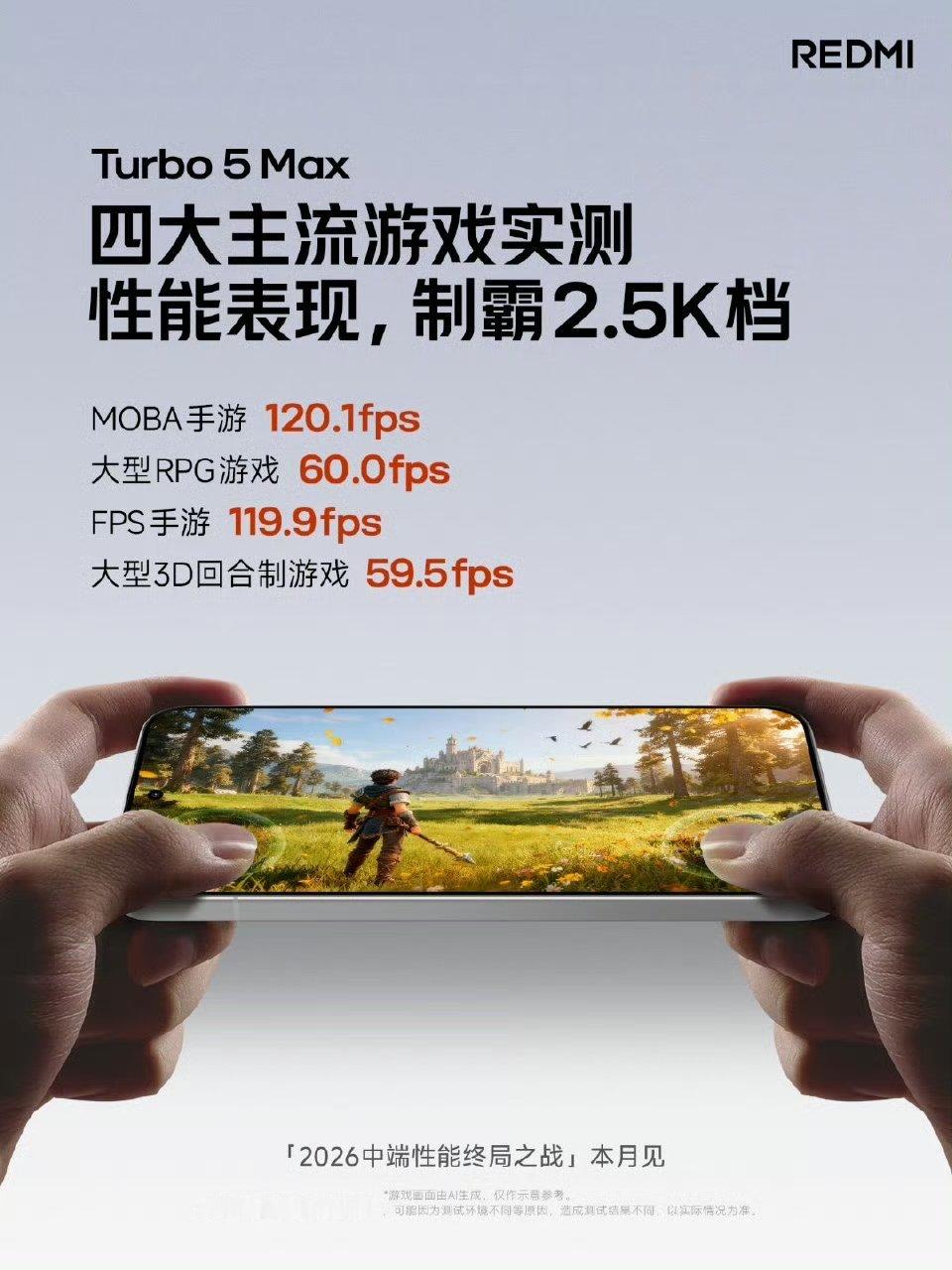 【首发搭载天玑 9500s,小米 REDMI Turbo 5 Max 号称主流游戏性能表现制霸 2.5K 档】红米 发文预热新机 REDMI Turbo 5 Max。该机先前已经确认首发搭载天玑 9500s,官方这次带来了“四大主流游戏”实测表现,号称制霸 2.5K 档,“跑分只是开始,实战印证终局!”MOBA 手游:120.1fps大型 RPG 游戏:60.0fpsFPS 手游:119.9fps大型 3D 回合制游戏:59.5fps从官方介绍获悉,REDMI Turbo 5 Max 安免兔 V11 综合性能跑分破 361 万,全球首发正代旗舰芯天玑 9500s,采用 CPU 全大核架构、12 核 GPU,本月见。这款手机已于昨天开启预约,预约且首销购机送一年延保,可享 365 天只换不修服务。卢伟冰介绍,REDMI Turbo 5 Max 搭载天玑 9500s,综合跑分达 361 万。这是天玑正代旗舰芯首次来到 Turbo。卢伟冰表示,K 系列才会用到的芯片首次来到 Turbo,这意味着 Turbo 5 Max 全面 AOE 2.5K 档,甚至能挑战越级斩杀 4000 元档性能旗舰。