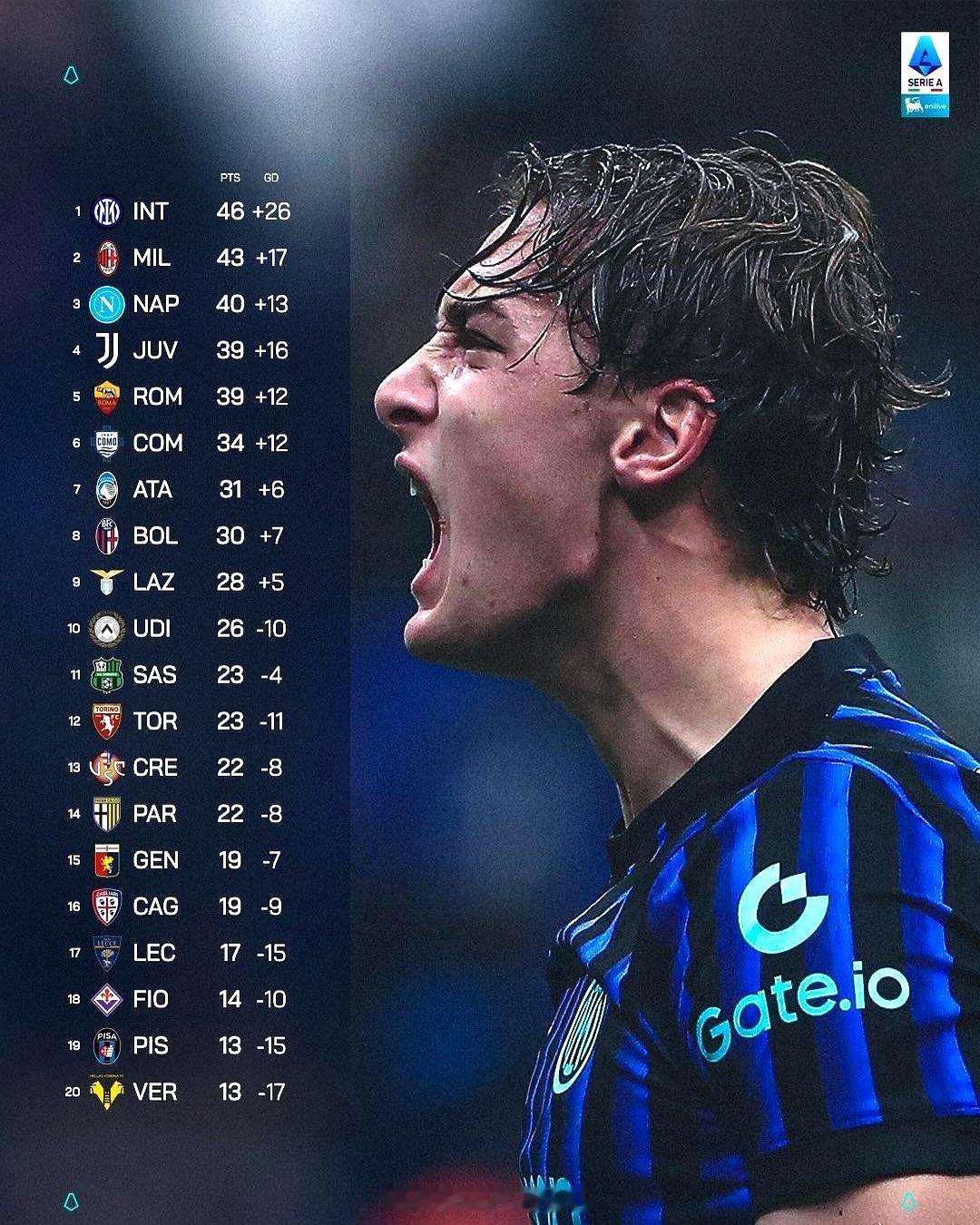 国米领先6分也慌 欧冠一周双赛来了,国米和那不勒斯马上连轴转。 联赛20轮,国米46分排第一,靠虐菜稳,下半区10场全收。 米兰少赛一场差3到6分,没欧战,体能满格,刚3比1逆转科莫,19轮不败。 那不勒斯三连平,落后6分,卫冕悬。 接下来两周,国米踢完欧冠再碰前六,米兰坐山观虎斗。谁掉链子,冠军就飞。