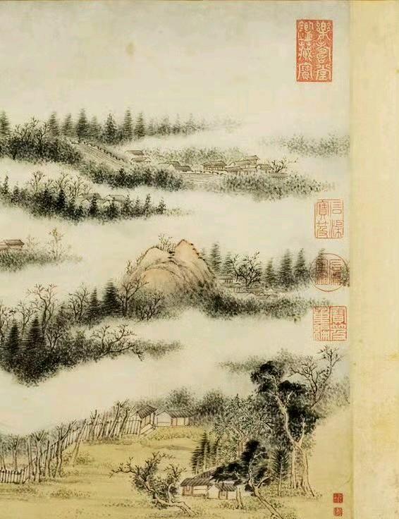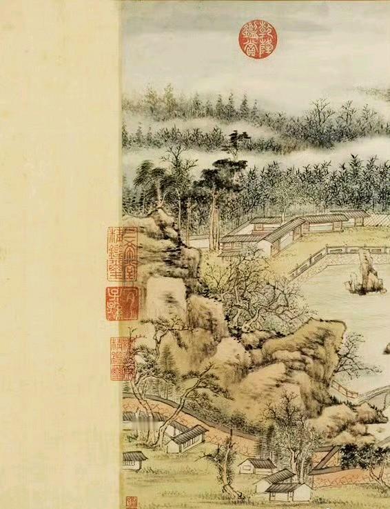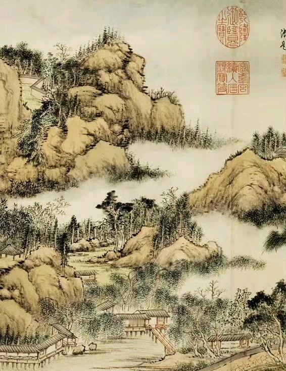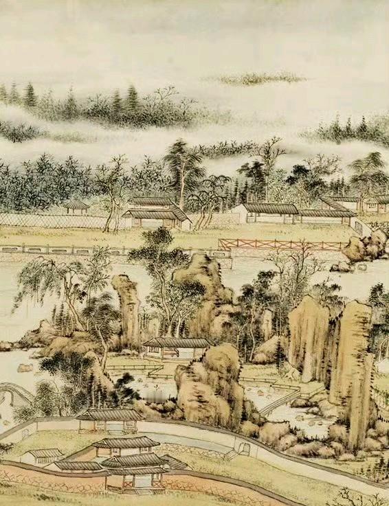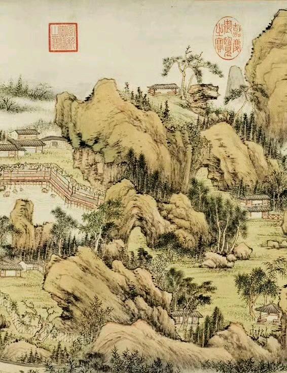 明. 沈周 《山水轴(魏园雅集)》。 郑板桥的竹子画的好,题款更妙。 清. 李鱓
