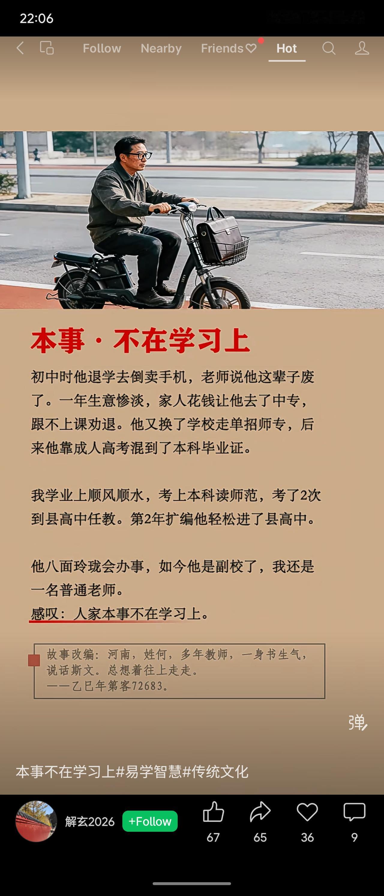 他学业坎坷,倒卖手机、转读中专、成人高考获本科。我师范毕业顺利任教县高中。他善交际、会办事,很快升任副校长,我仍是普通教师。可见本事未必在书本上。