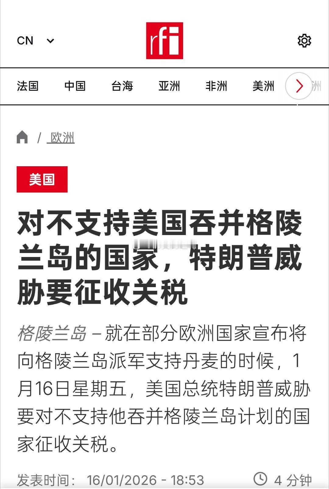格陵兰女外长白宫外冬夜点烟就在部分欧洲国家宣布将向格陵兰岛派军支持丹麦的时候,1月16日星期五,美国总统特朗普威胁要对不支持他吞并格陵兰岛计划的国家征收关税。特朗普在华盛顿白宫举行的圆桌会议上表示:“如果某些国家在格陵兰岛问题上不配合,我可能会对它们征收关税,因为我们需要格陵兰岛来保障国家安全。”他重申了吞并这片位于北极的丹麦自治领土的意图。据报道,丹麦作为北约成员国,与美国存在“根本分歧”,于周四向格陵兰岛部署了一支欧洲军事力量。但特朗普表示,这次部署对他的“目标”毫无影响。 海外新鲜事
