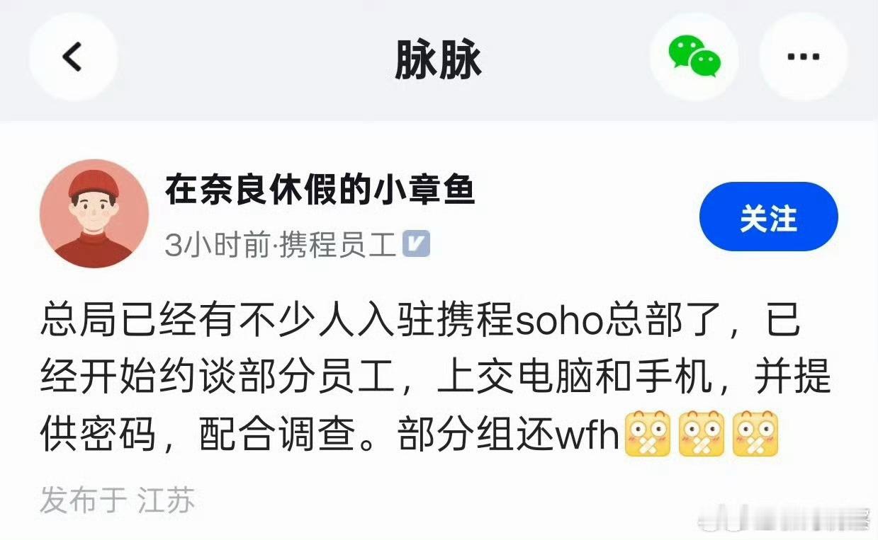 携程被查,内部员工现身说法了。总局已经派人入驻携程了,手机和电脑都上交了。 一定要把它家对酒店、商家、消费者那些压榨欺诈的勾当给大白天下。大数据杀熟,它家算是江湖祖师爷。携程涉嫌垄断携程 杀熟
