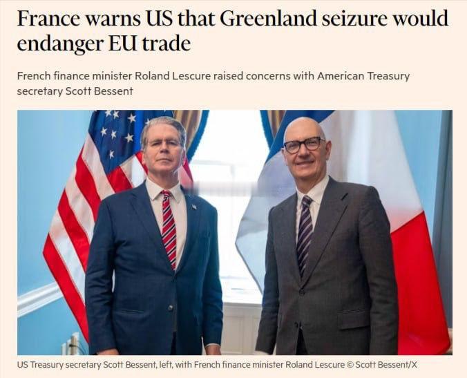 特朗普称或对反格陵兰岛计划国加关税英国FT报道:如果美国试图吞并格陵兰岛,欧洲将断绝与美国的一切经济联系。法国财政部长就此向美国同行发出警告。他强调:任何试图吞并该岛的举动都等同于越过“红线”。他指出,欧洲对川普关于格陵兰岛的主权声索深感担忧。 海外新鲜事