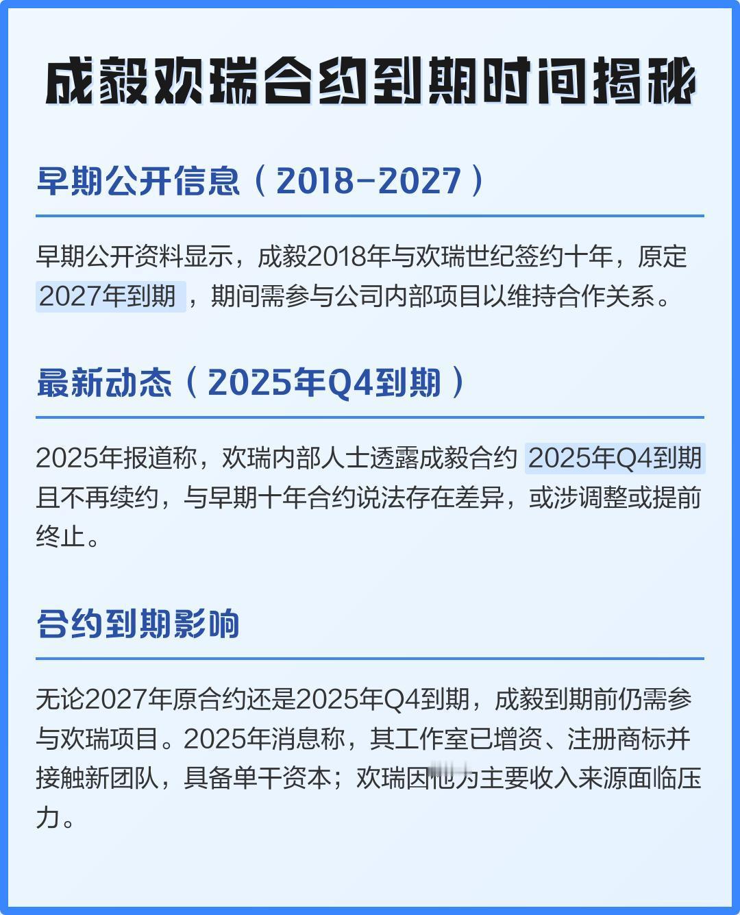 成毅和欢瑞世纪这对合作近8年的“老搭档”,终于要在2026年1月画上句号了!
