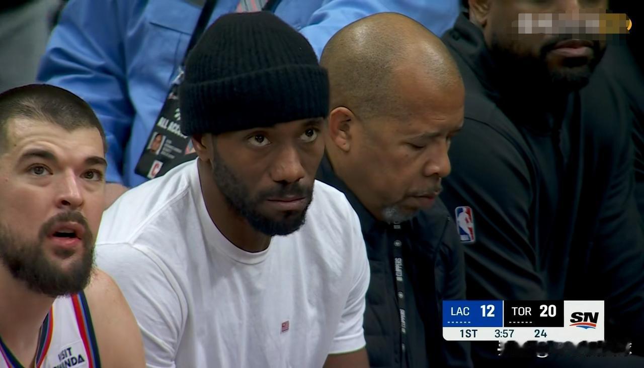 快船当家球星伦纳德真是满脸愁容!在今天快船客场挑战猛龙的比赛中,当时比赛进行到了第一节的3分57秒,快船以12:20落后对手8分,形势看起来非常被动,此时转播镜头给到了快船的替补席,只见此役因伤缺阵的伦纳德满脸愁容的坐在场下,整个人看起来愁坏了,从伦纳德的面部表情来看,他对于球队能否赢下本场比赛感到深深的忧虑。