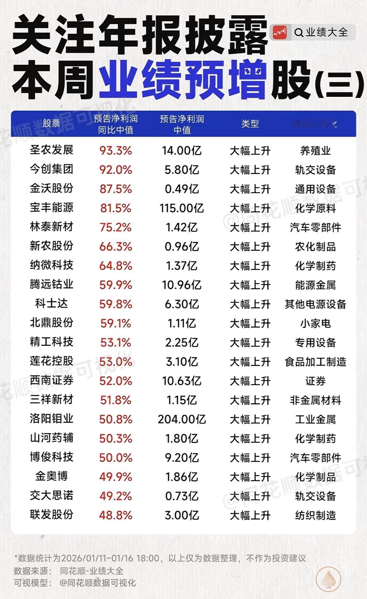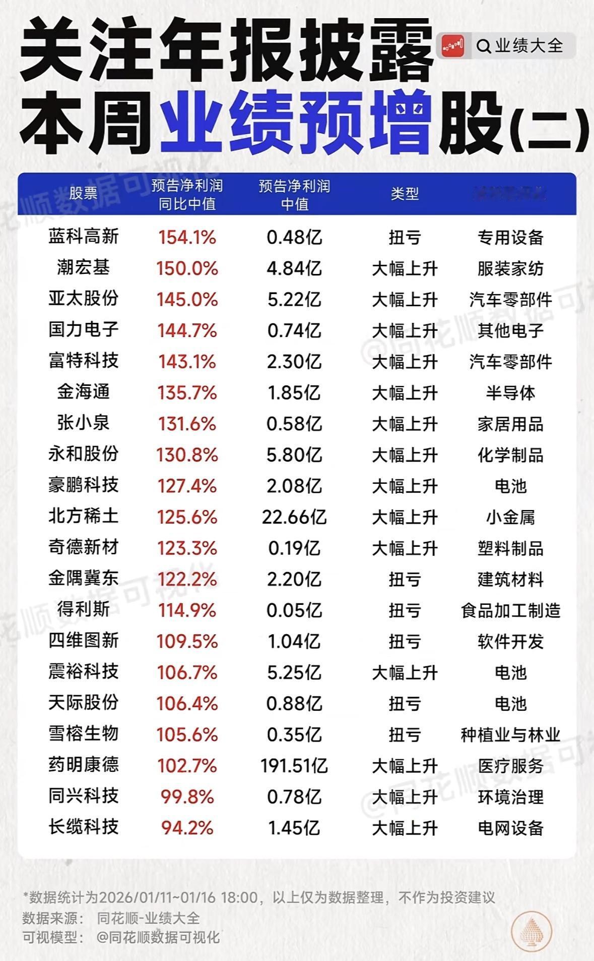 关注2025年年报本周业绩预增股揭晓!📈💰 "多行业年报预增亮眼,汽车半导体领跑,医疗科技紧随,业绩全线飘红!" "年报季聚焦高增长赛道:汽车、半导体、医疗领跑,多股业绩翻倍,行业龙头表现亮眼!"