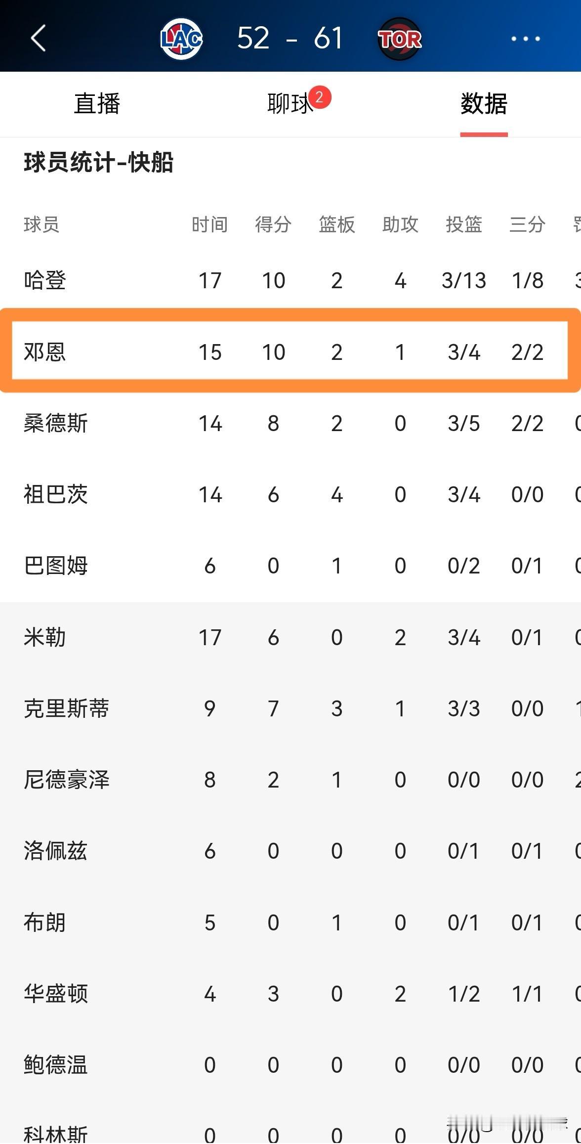 快船老将邓恩终于铁树开花了!在今天快船客场挑战猛龙的上半场比赛中,邓恩在投篮端的表现真是太让人意外了,他这棵铁树终于开花了。 在前两节比赛中,邓恩首发出战15分钟,投篮4中3,其中三分球2中2、罚球2中2得到10分,还有2篮板1助攻。 对于邓恩在上半场比赛中的爆发,我相信很多人都没有想到,因为邓恩做到了他并不擅长的事情。