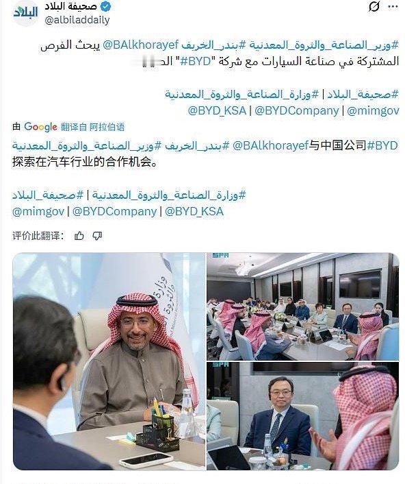 【比亚迪王传福,见了阿布扎比王储!】 其实比亚迪特别适合在沙特发展,1是因为沙