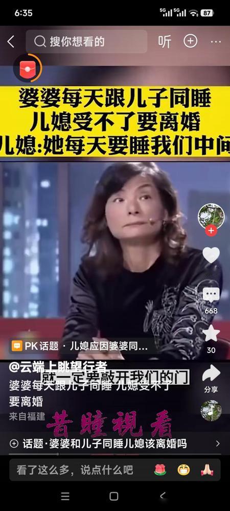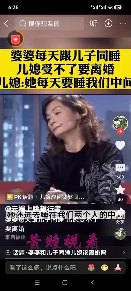 婆婆每天早上6点准时敲门,要跟儿子同睡,儿媳受不了要离婚,儿媳:每天她都睡在我俩中间。 这事儿听起来简直像是在拍什么离谱电视剧,可它就真实地发生了:这位婆婆每天清晨准时“查岗”,非要挤进小两口的卧室,甚至直接睡在儿子和媳妇的中间,搞得儿媳妇忍无可忍,最后只能选择离婚。 说真的,这种家庭边界感的缺失已经到了令人窒息的地步。 正常生活里,卧室本来就是夫妻最隐私的领地,婆婆这种每天准点敲门硬挤的行为,不仅是打扰休息,更是彻底破坏了婚姻里起码的尊重。 我其实更在意那个丈夫在整件事里的态度,这种“三人行”的睡觉方式能维持下去,说明儿子大概率是个没断奶的“宝妈男”。 感觉他可能还觉得这是老妈对自己的疼爱,却完全意识不到这种扭曲的母爱正在亲手毁掉他的婚姻。 就像很多网友说的那样,这种日子真的没法凑合,长痛不如短痛。 因为这已经不是简单的生活习惯差异,而是婆婆对这段婚姻主权的公然霸占,只要不离婚,儿媳妇在这个家永远感觉像个外人。 我总觉得,如果婆婆真的这么舍不得儿子,当初干脆就别让他娶媳妇成家,何必把另一个无辜的姑娘拉进这种怪异的家庭关系里受罪呢? 这种所谓的“不舍得”,本质上其实是一种极度的自私,早点放手离开,反而是对儿媳妇最好的救赎。