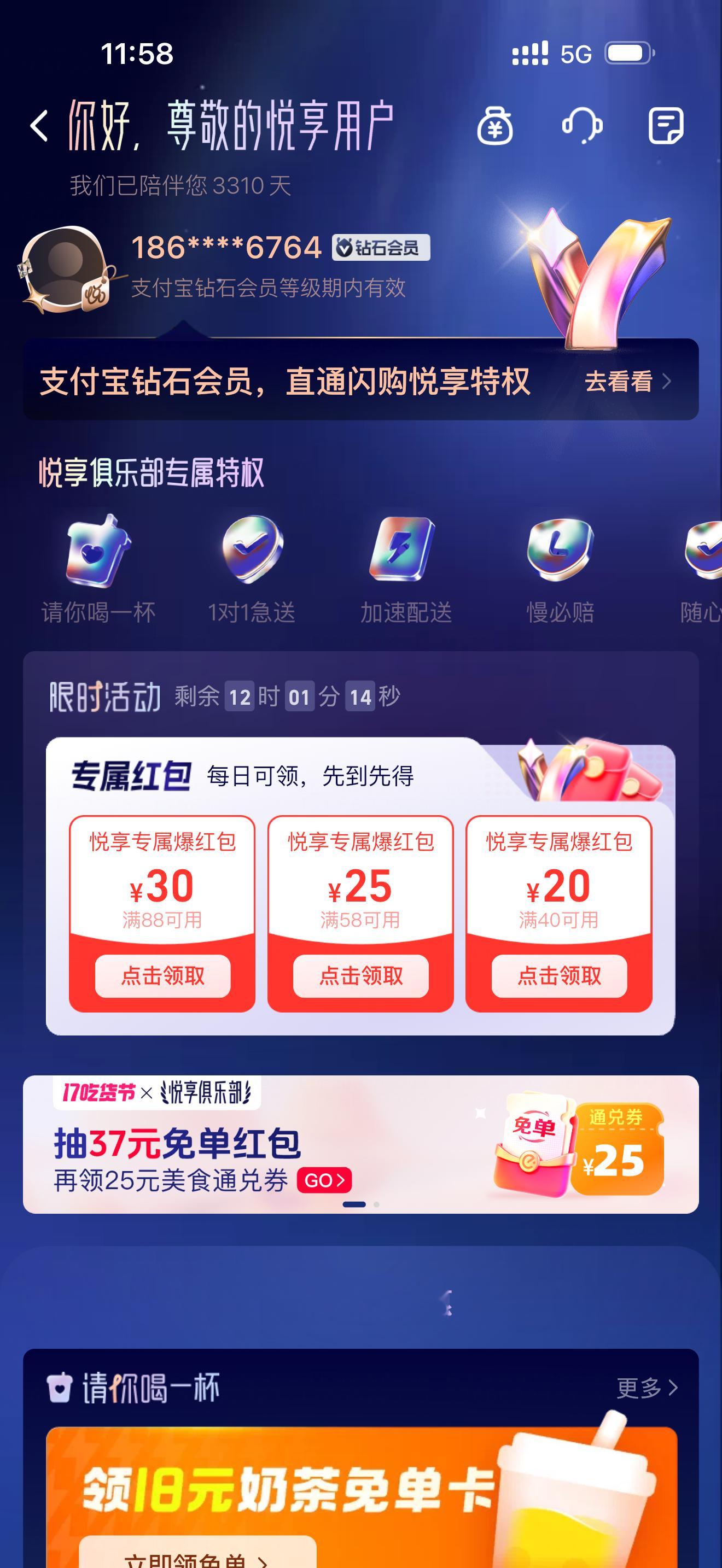 淘宝闪购悦享会员记得今天来领一杯免费奶茶,只有今天有效!!不要错过哦