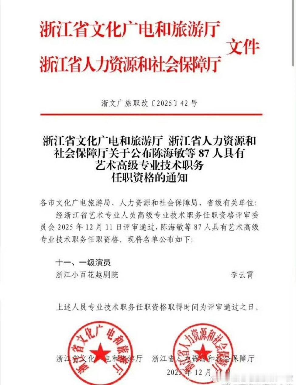 陈丽君李云霄晋升一级演员陈丽君、李云霄晋升一级演员。 文件全文:网页链接