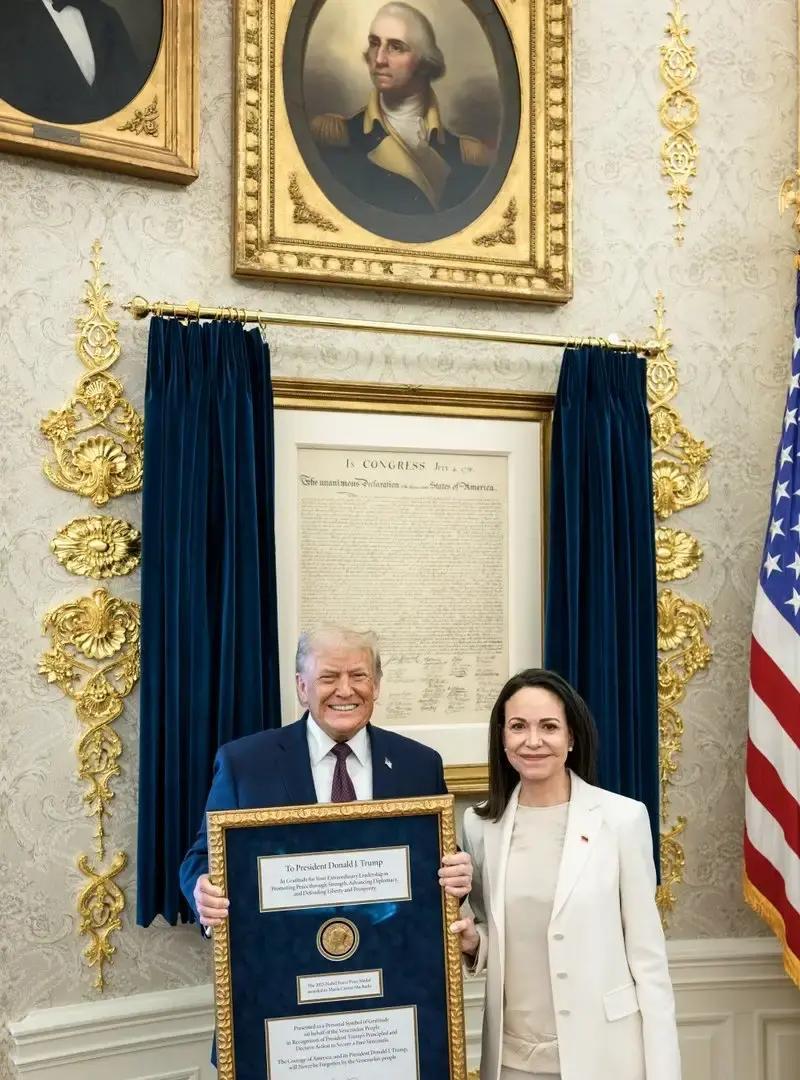 一个号称“为了和平”的奖,被摆上大国政治的桌面,你会怎么想? 有报道提到,白宫说特朗普在办公室会见委内瑞拉反对派人物马查多,对方还把自己的“和平奖”递过去,场面看上去体面,其实全是政治信号和算计。 对马查多来说,这更像一份投靠声明。她在本国政治压力很大,有人就说:“这是把奖杯当成护身符。”既能向外部表决心,又给自己多留一条退路。 对特朗普来说,笑着接下这个奖,也是一种政治表演。面对拉美事务,他既要向国内展示“我有手段”,又要对盟友暗示:在这个地区,美国说话还很算数。 麻烦是,和平奖一旦被频繁用作站队工具,本来象征和解的东西,就会一步步变成外交筹码,最后可能只剩下外壳。 而且,大国在别国首都做这种公开站队,很容易被质疑成“变相介入”。有人反驳说:“这只是价值观支持。”但被支持的一方,往往就要付出相应政治代价。 更现实的问题是,奖项评委会的权威也被拖下水。当他们的决定频繁和具体外交行动绑在一起时,外界很难不怀疑:评选到底是专业判断,还是提前编好的剧本。 和平本身不是道具,但只要有人愿意拿它当舞台道具,它就离初心越来越远。 你怎么看待这种把奖项、荣誉当成政治谈判筹码的做法,如果你是当地普通民众,会觉得被保护了还是被利用了?