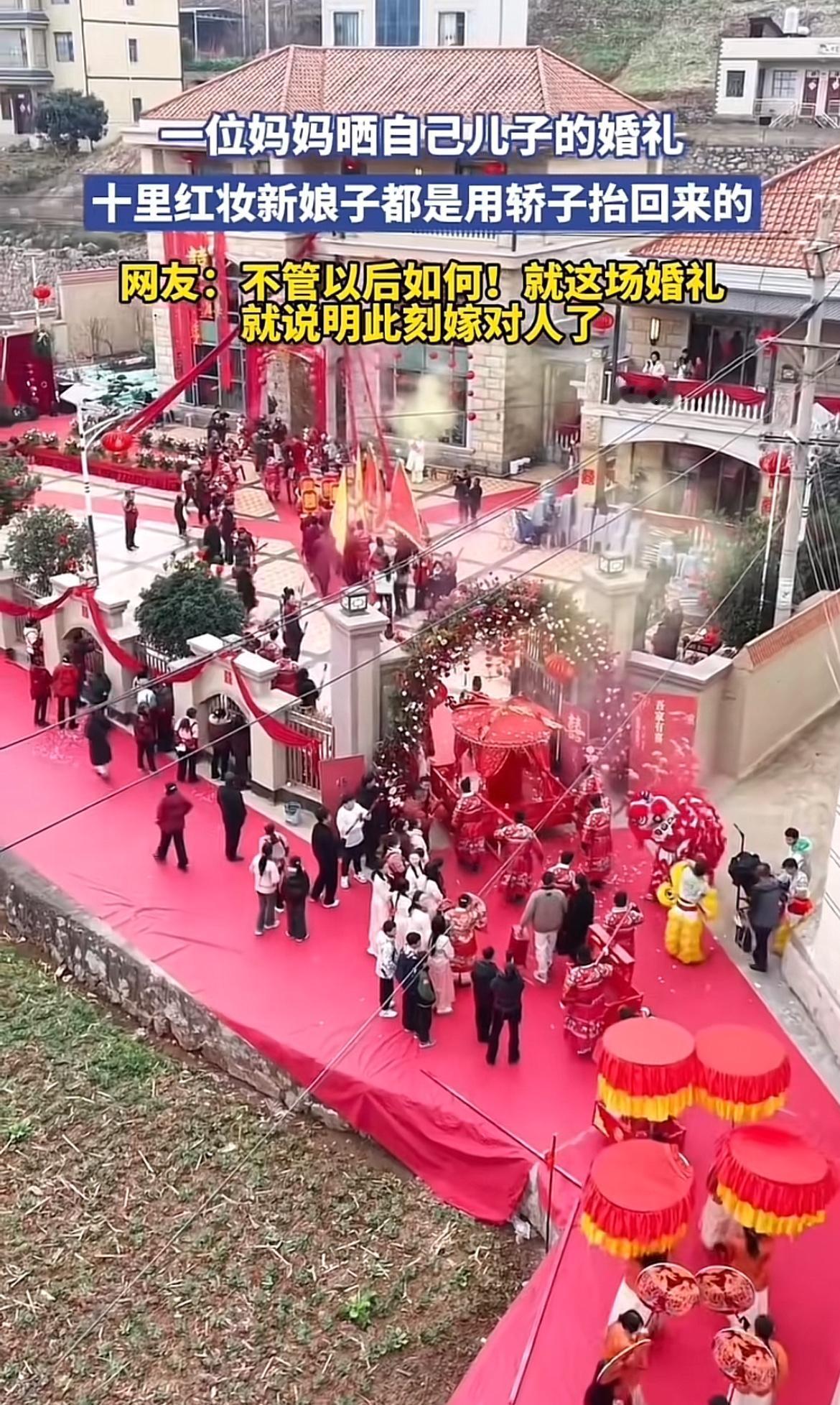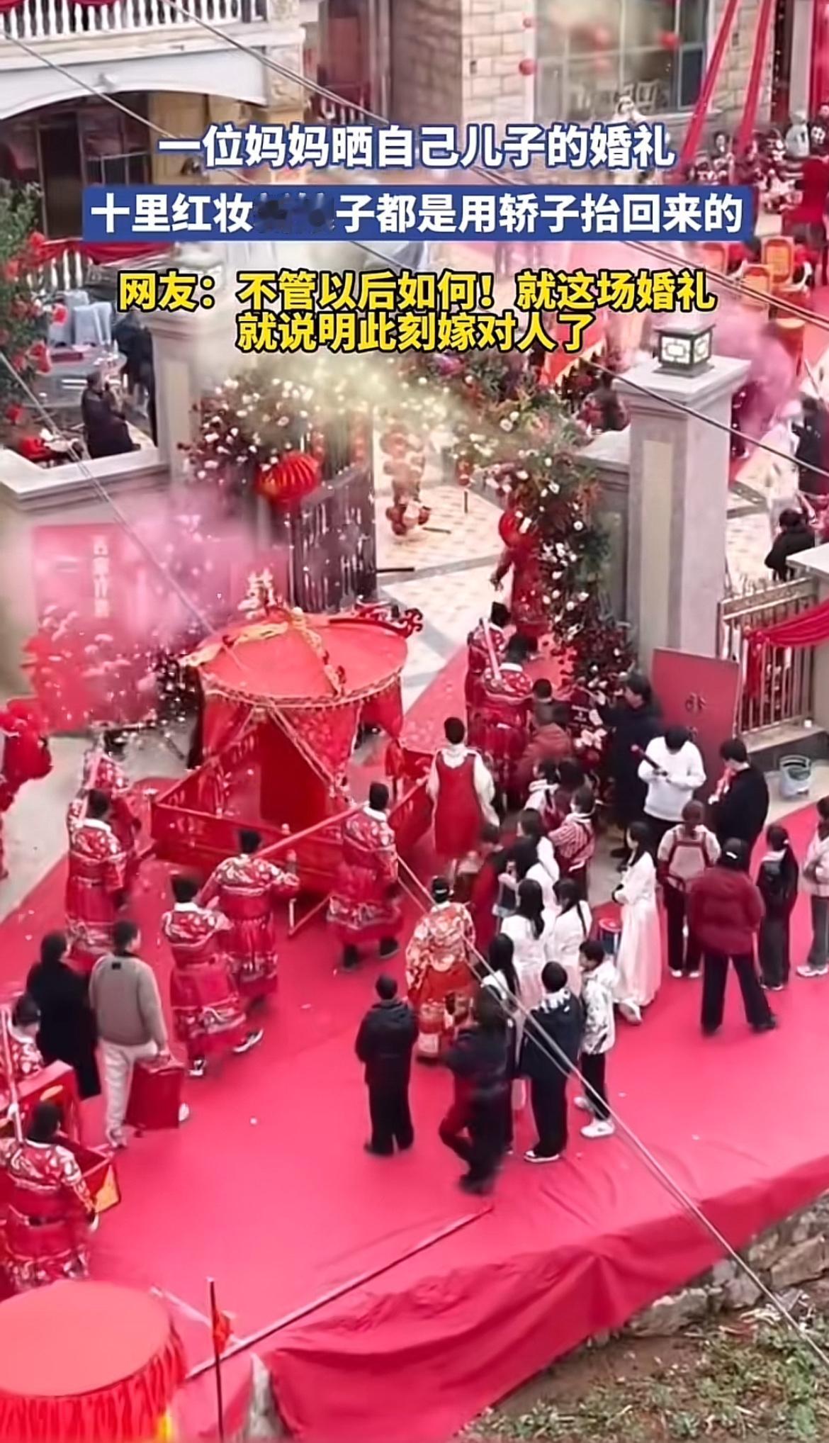 妈妈晒儿子婚礼照,十里红妆那场面太震撼了。就像“刘能”儿子的婚礼,温美玲豪掷8000万给儿子办婚礼,还整出十里红妆的排场,新娘子坐着花轿风风光光进门。而且新娘家也不含糊,直接陪嫁一百万现金和上海别墅一套,婚纱都价值三百万,这谁看了不得说一句“大户人家”!不过,网上有人因为新娘身材被嘲胖,质疑两人结合是为了物质。但我觉得吧,婚礼这么用心,此刻新娘笑靥如花,就说明嫁对人了,日子是他们自己过,咱就祝福就完事儿!