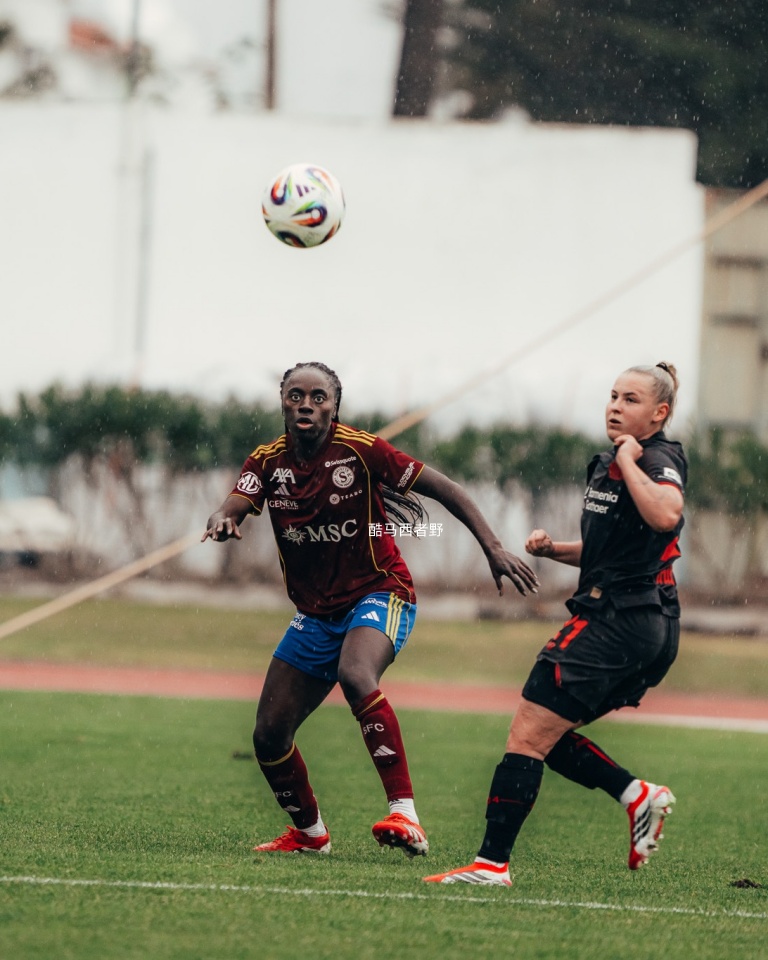 在当地时间昨天下午1点的热身赛中,勒沃库森女足3比0轻取瑞超塞尔维特女足,这是目前德女甲排名第七的球队和瑞超排名第一的球队之间的对决,由此也能看出德甲和瑞超的差距。 有意思的是在场上我看到了唐佳丽在西甲莱万特拉斯普拉纳斯女足时的法国队友贝內迪克特·西蒙(图二左),本是正当年的西蒙却已经效力过了九家俱乐部,基本上只能在一家俱乐部待上一个赛季,这个赛季初刚从西甲瓦伦西亚转会到了塞尔维特女足,作为加纳裔的法国人,曾经入选过法国U23的她去年被加纳归化,去年底加纳和英格兰女足的比赛是她为加纳女足效力的第一场比赛