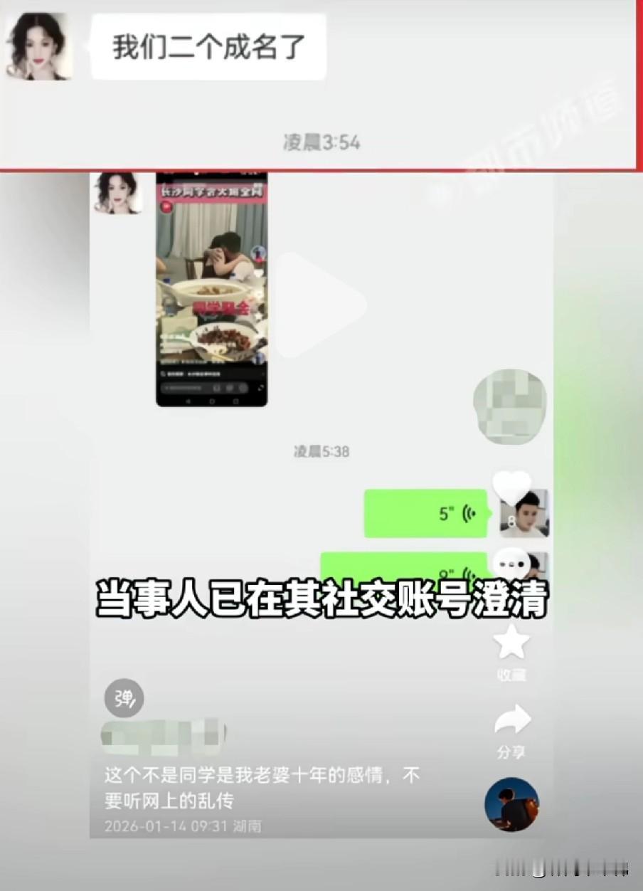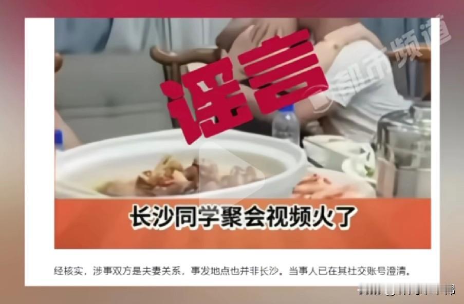 长沙警方辟谣了,人家俩是夫妻俩,事发地点也不是长沙。并非是网上传的,说他俩是同学,各自有家庭,在同学聚会上一见钟情,举止亲密,行为出格,发生这件事以后,导致两个家庭破裂等等。 拍摄这段视频的人,可谓居心不良,开头一段视频,故事全靠编。就知道吃瓜群众喜欢看什么,就专门投其所好。于是就成了一段桃色新闻,谣言满天飞,两个当时人被骂的体无完肤,最后才知道人家是夫妻俩。言行举止,合情合理,合法合规! 人到中年,夫妻感情还能这么好,拍视频的人嫉妒坏了吧!知人知面不知心,你永远不知道身边的是人是鬼,当着外人的面,一定不要漏财,不要炫富,不要秀恩爱,嫉妒会使人面目全非!
