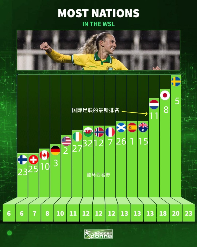 这是今年冬窗期英女超联赛各国外援人数的排行榜,瑞典球员在英女超联赛踢球的人数上升到了第一位,日本球员紧随其后,前十五名的排行如图,从这个排名来看,在三月份的女足亚洲杯上我们能够击败日本女足和澳大利亚女足的难度有多大