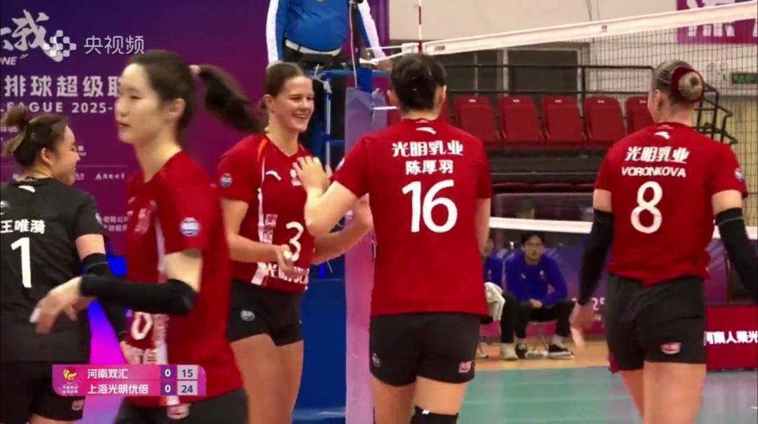 上海女排客场3:0河南女排,胜9胜1负,积26分,领跑! 女排超级联赛第十轮