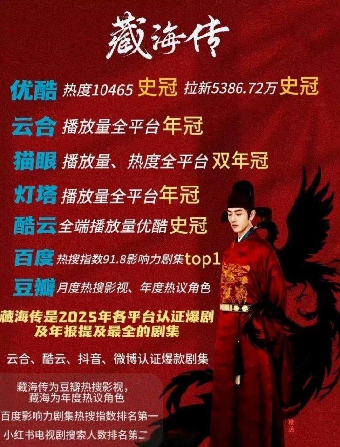 《藏海传》日本开播后热度居高不下,播出第二天拿下点播人气总榜 top1,亚洲电视剧榜也成功登顶。剧集拉新用户超 5386 万,平台数据亮眼。肖战藏海传登亚洲电视剧榜top1肖战藏海传日本播出第二天人气