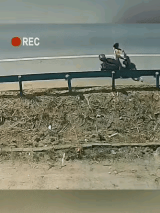 这个骑摩托车的女子,反应非常迅速,做法非常正确,当遇到这样的危险情况时,第一时间就应该迅速离开现场,只有如此,才能够保证自己的人身安全,相反有些人在遇到这种情况时,变得手足无措,不知如何是好,甚至就在原地等待灾难的来临,看到这个女子应对灾难的行为,由衷的为她点赞!