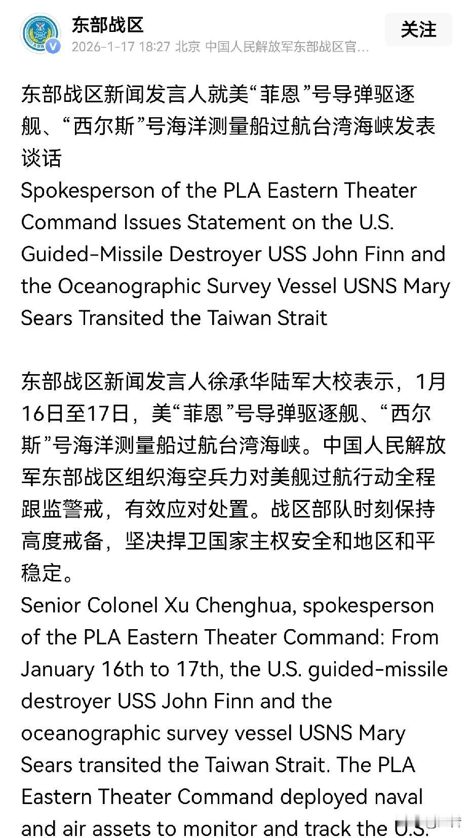 果断亮剑! 美舰过航台湾海峡。 东部战区跟监警戒。 美舰这是来试探底线。 还是他们有另外的目的。 只要胆敢挑衅我们的底线。 东部战区坚决给予沉痛的打击。 此时东部战区也不能掉以轻心。 搞不好美军的大动作还在后面。 毕竟这一次是派美舰来试探我们。 而不是派其他国家的军舰来试探。 感觉美舰包藏祸心来者不善的样子。