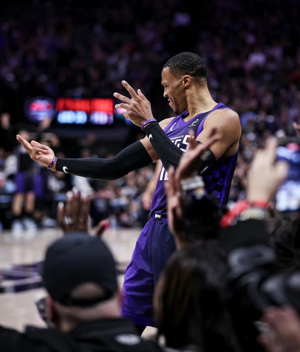 威少近4战场均20.5分8.5助攻3.8记三分! vs奇才!14中9,三分9中6,26分6助攻; vs尼克斯!13中6,三分6中2,19分11助攻; vs湖人!16中8,三分8中4,22分7助攻; vs火箭!12中6,三分6中3,15分10助攻。 国王队近期取得四连胜,尤其连克强敌火箭湖人与尼克斯令球队士气大振。 而威少功不可没,场均可以得到20.5分8.5助攻3.8记三分,投篮29/55&52.7%,三分15/29&51.7%。 要知道威少本赛季年薪只有363万美元,却拿着底薪干着千万年薪的活。生涯末年的威少,又找到了打球的快乐。 然而目前,国王仅12胜30负排名西部第14,球队总体来说还是缺乏竞争力,是一支弱队。而且据说国王队将“超市大开张”,老将都在交易名单之上。 若真是这样,威少在其他球队很难比得上在国王队时的地位。毕竟国王队并不那么在乎战绩,球员有很大的发挥空间,来吸引交易对象,以获得最理想报价,重建。