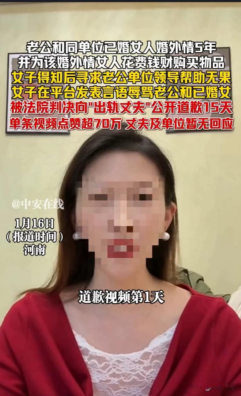 河南三门峡,一女子因怀疑丈夫与女同事有婚 外 情,愤怒之下,在抖音平台实名公布了丈夫的工作单位、消费记录等隐私,并使用了激烈的言辞。丈夫以侵犯名誉权为由起诉,法院判决女子侵权成立,要求她删除信息并在网上公开道歉。然而,女子的“道歉”变成了新的反击,连续五天发布视频,嘴上说着“道歉”,画面里却反复展示着丈夫的姓名、单位、出 轨事实等,用“丈夫满足生理需求”、“两人是真爱”等反讽语句,将道歉变成了一场全网围观的“控诉会”,粉丝暴涨。很快,女子的丈夫所在单位紧急通报,称高飞此前已受党纪处分,现被停职调查。   据悉,一位名叫牛某某的女子在抖音平台注册了名为“娜姐重生”的账号。   起初,这只是牛某某记录生活的普通空间,却因一场持续五年的婚外情彻底改变了轨迹。   牛某某的丈夫高飞,是当某单位中层领导。   据牛某某称,她偶然发现高飞与一名已 婚女同事存在长期不 正 当关系,二人不仅频繁私下往来,高飞还多次为对方购买衣物、饰品等物品。   在多次沟通无果后,牛某某决定反击,将高飞与女同事的姓名、工作单位、部分消费记录截图整理成图文视频,分批发布在抖音、百度贴吧等平台,并配以“真爱”“无私奉献”等讽刺性言论。   这些内容迅速引发网友关注,评论区充斥着对高飞的指责和对牛某某的声援。   然而,这场“网络控诉”并未按牛某某预想的方向发展。   2025年,高飞以侵犯名誉权为由,将牛某某告上法庭。   法院经审理认为,牛某某虽因婚姻矛盾情绪激愤,但通过公开平台发布他人隐私信息,并使用侮 辱 性语言,已对高飞的社会评价造成负面影响,构成名誉权侵权。   法院判决要求牛某某删除相关内容,并在其抖音、贴吧账号发布经法院审核的道歉声明,持续至少15日。   2026年1月12日起,牛某某开始了她的“道歉”之旅,连续五天,她每天在抖音发布视频,标题均为“向出轨丈夫高飞道歉”。   但是内容却有些微妙,视频中不仅重复提及高飞的全名、工作单位、婚外情持续时间,还附上了法院判决书截图、高飞为女同事购物的消费记录,甚至用红字标注“感谢丈夫为女同事满足物质与生理需求”。   每条视频点赞量均突破数十万,账号粉丝数暴涨至50余万。   网友戏称这是“道歉式举报”“公开处刑”。   1月16日,第五天的道歉视频突然被平台限制可见。   而牛某某在直播中解释,视频被限流并非自愿删除,并否认借机带货,称账号“购物车”功能是早年为省钱购物所开,现已关闭。   1月17日,高某所在单位发布情况通报,称高飞已于2025年12月5日受到党纪处分,现被停职调查,将依规依纪处理。   值得注意的是,牛某某曝光的判决书显示,法院认定其行为侵犯名誉权,但未对高飞是否存在婚外情作出司法认定。   那么,从法律角度,这件事如何评价呢?   1、牛某某初次曝光行为是否构成对高飞及其同事名誉权、隐私权的侵害?   《民法典》第一千零二十四条规定,民事主体享有名誉权。任何组织或者个人不得以侮辱、诽谤等方式侵害他人的名誉权。名誉是对民事主体的品德、声望、才能、信用等的社会评价。   本案中,牛某某在公开平台发布高飞及其同事的姓名、单位等个人信息,并附上“满足生理需求”等侮 辱 性评述,其直接后果是导致特定自然人的社会评价被贬损。   即使高飞确有不当行为,牛某某的救济途径也应是通过合法诉讼主张权利,而非以公开处刑的私力救济方式,以侵权对抗所谓的过错。   所以,法院判决牛某某的行为构成名誉权侵权并要求其道歉、删除信息,具有充分的法律和事实依据。   2、牛某某后续“道歉视频”是否构成新的侵权行为?   《民法典》第一千零三十二条规定,自然人享有隐私权。任何组织或者个人不得以刺探、侵扰、泄露、公开等方式侵害他人的隐私权。隐私是自然人的私人生活安宁和不愿为他人知晓的私密空间、私密活动、私密信息。   本案中,牛某某为履行法院判决,连续五天发布“道歉视频”,但其视频内容并非单纯的赔礼道歉,而是重复甚至强化了姓名、单位、婚外情时长、展示消费记录和判决书等,并使用了 反讽”语气。   从形式上看,牛某某确实在执行法院发布道歉声明的判决。   然而,判决书中明确要求道歉声明应经过法院审核,其发布的视频内容可能被认为超出了旨在“消除影响、恢复名誉”的真诚道歉范畴,可能演变为二次曝光和情感控诉,涉嫌构成再次侵权。   3、涉事企业对高飞的处理是否合法合理?   结合《纪律处分条例》等规定,高飞涉嫌婚内出 轨行为,该等行为违背夫妻忠实义务,生活作风存在问题,对高飞作出“党纪处分”与“停职调查”并无不当。   如查实高飞行为,高飞若是公职人员,视情节轻重,将面临警告、记过甚至开除公职的处分。   对此,您怎么看?