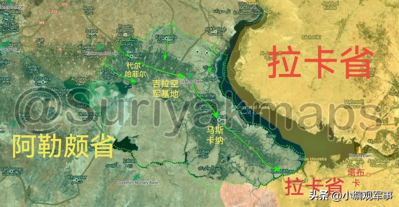 1月17日,“叙利亚民主军”根据当天达成的协议撤退后,叙利亚过渡政府军随即控制了阿勒颇省东部大片地区,包括代尔·哈菲尔、吉拉空军基地(视频七)和马斯卡纳等地,最终沿此战线进入了拉卡省南部。 在此期间,“叙利亚民主军”的一些部落成员叛变,加入了过渡政府军的阵营。