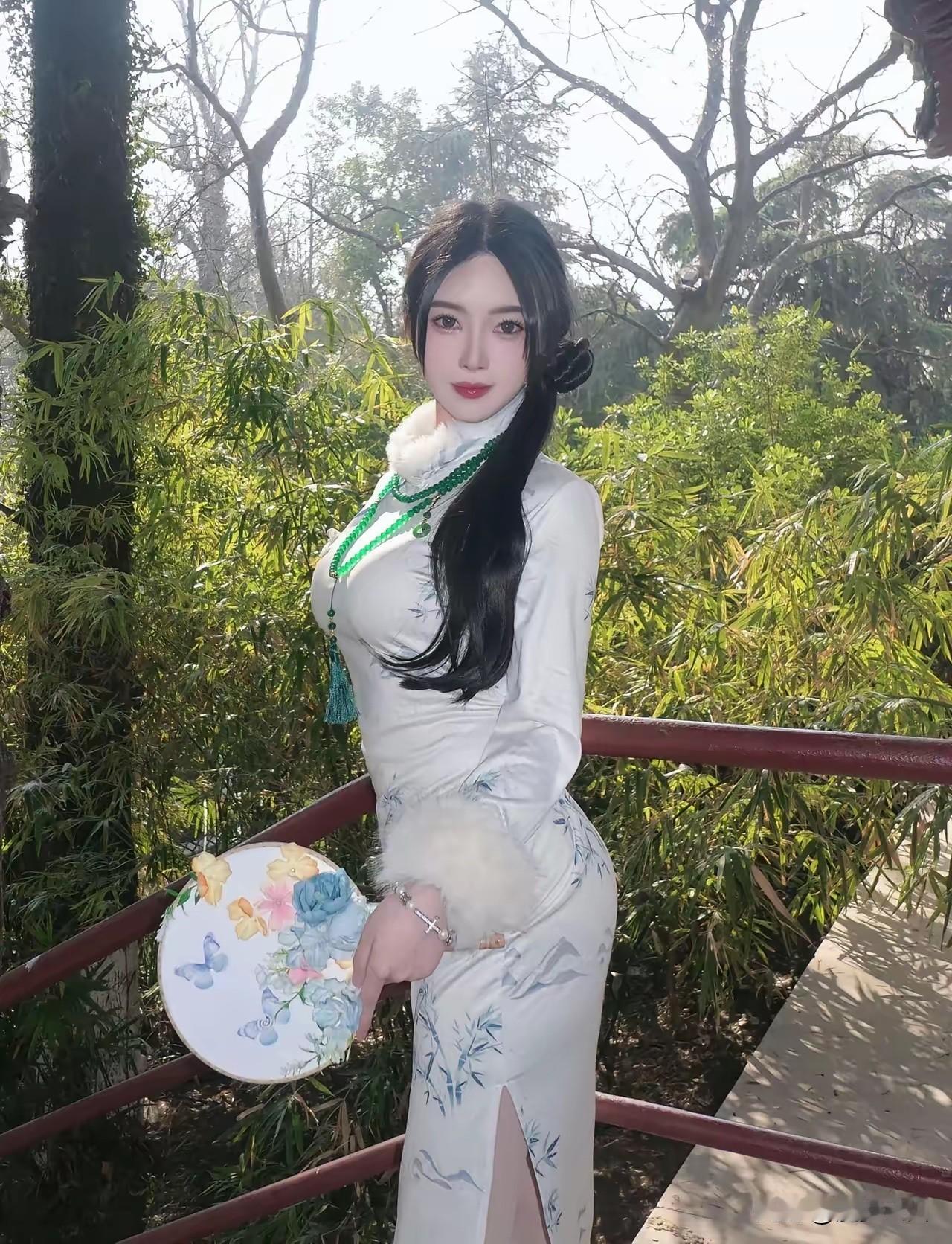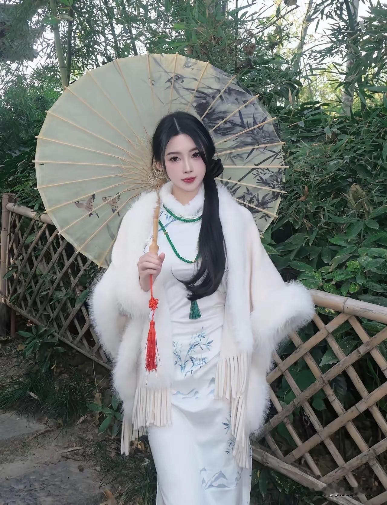 《竹巷雪色》 油纸伞收拢了半巷的风 白狐裘裹住江南的冬 她站在竹影深处 鬓边的墨发,比伞面的竹纹更浓 绿璎珞垂在素色旗袍上 像檐下未融的冰棱 红流苏掠过石径时 惊落了竹叶间藏着的春 竹篱笆外的日光很轻 轻得不敢惊动她的身影 只把油纸伞上的水墨 晕染成了眼底的朦胧 图片来自网络,侵删