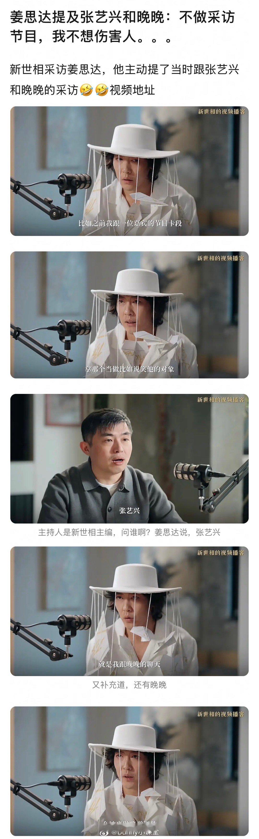 姜思达接受采访提到当年采访晚晚和张艺兴的名场面,他表示没有恶意引导也没有恶意剪辑,只是聊天结果变成了笑梗……“只是跟你聊天”这更好笑了