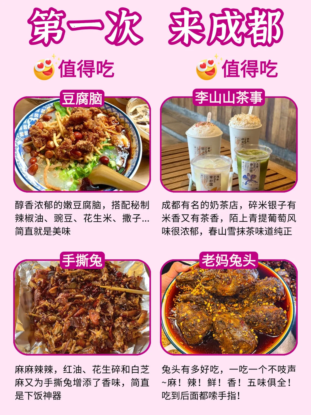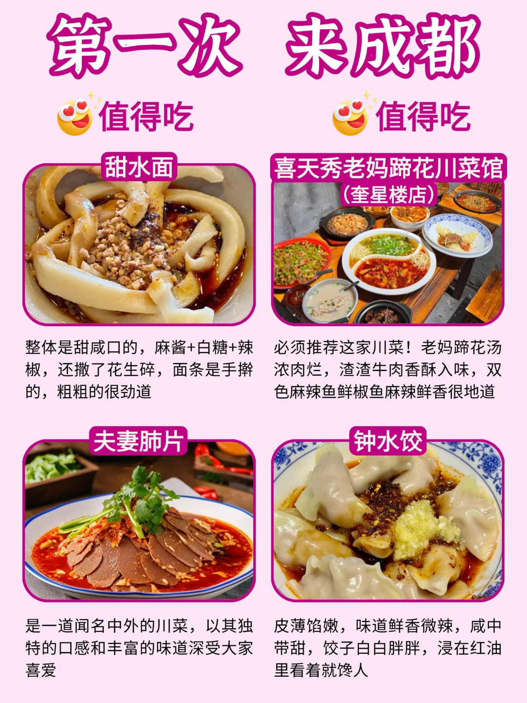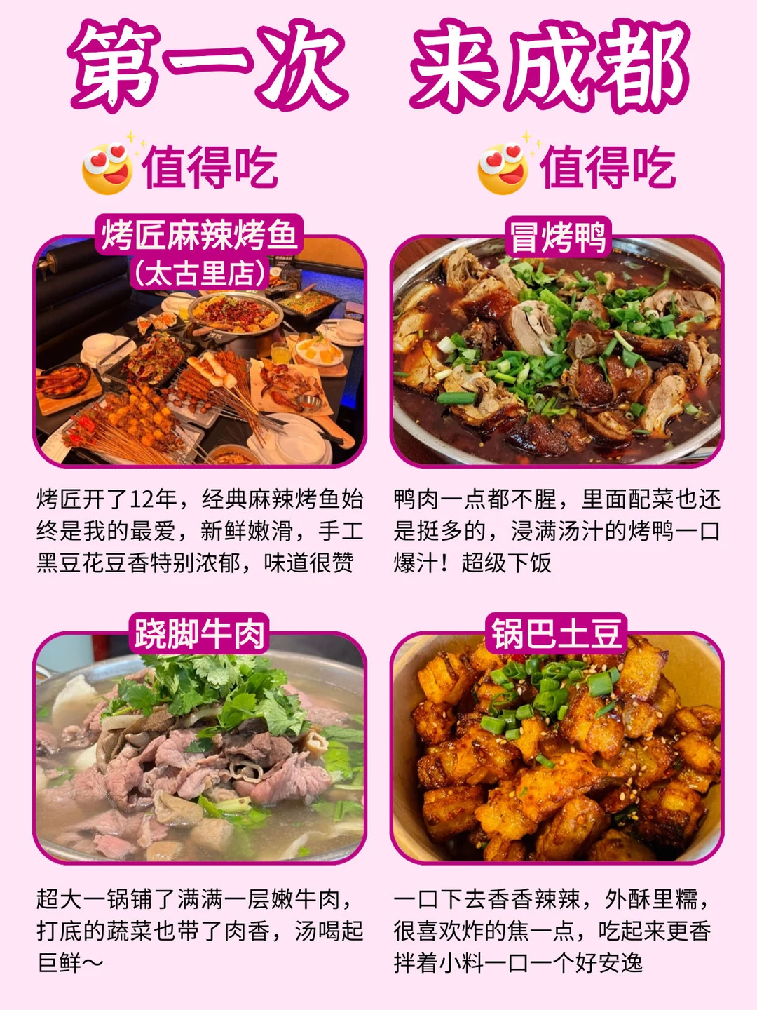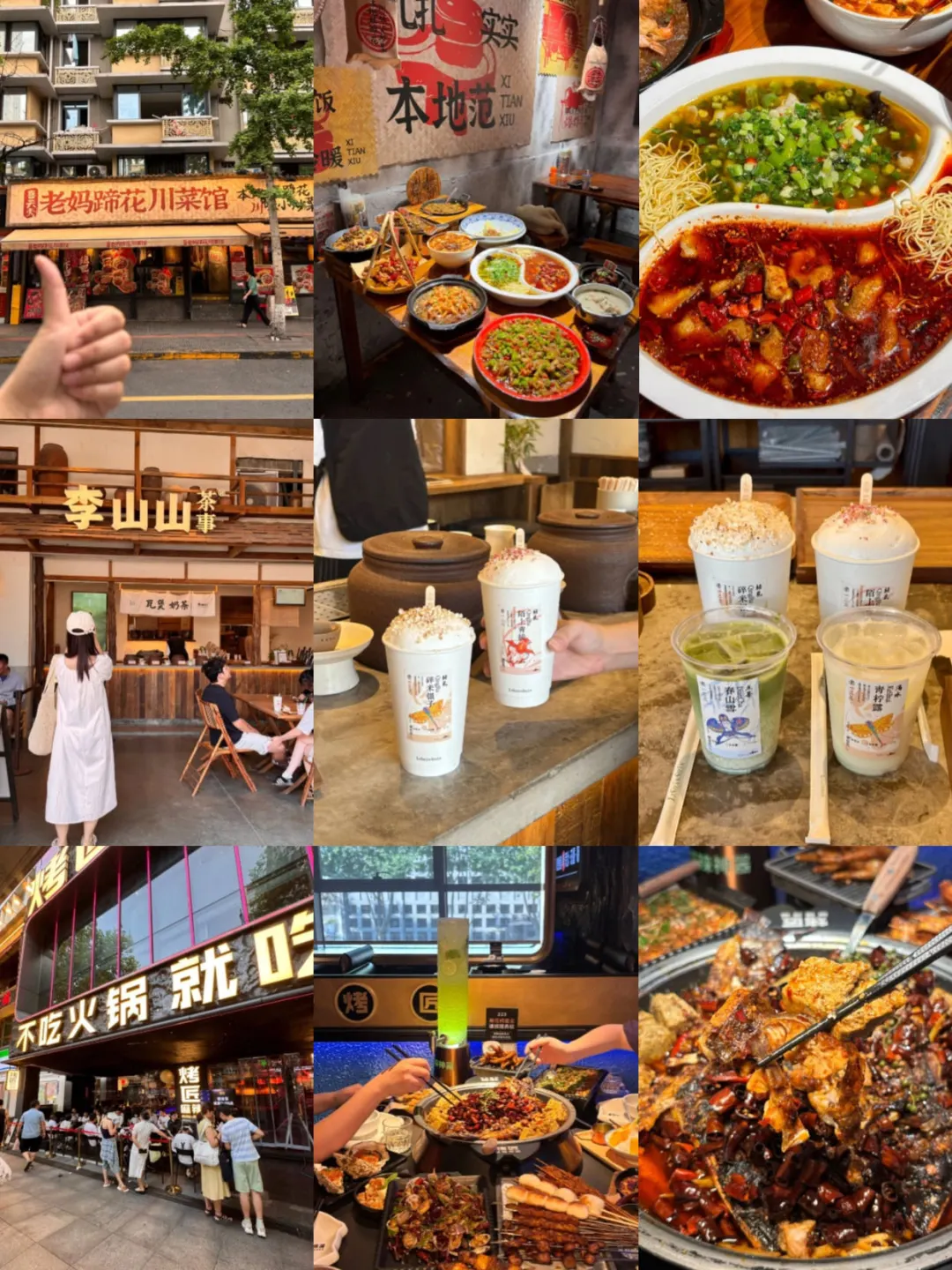 谁能忍住不对成都美食疯狂心动啊💘!作为在成都吃了二十几年的土著,把压箱底的美食清单全掏出来了🤩第一次来成都一定要尝尝的成都特色美食小吃! 上面全是亲自啃过喝过的店,绝对真实分享✨来成都玩的姐妹直接抄作业,保证不踩雷~ - 😋成都美食 🐾喜天秀老妈蹄花川菜馆(奎星楼店) 🐾李山山茶事 🐾烤匠麻辣烤鱼(太古里店) 🐼更多其他城市好玩好吃的游玩攻略直接戳这里-