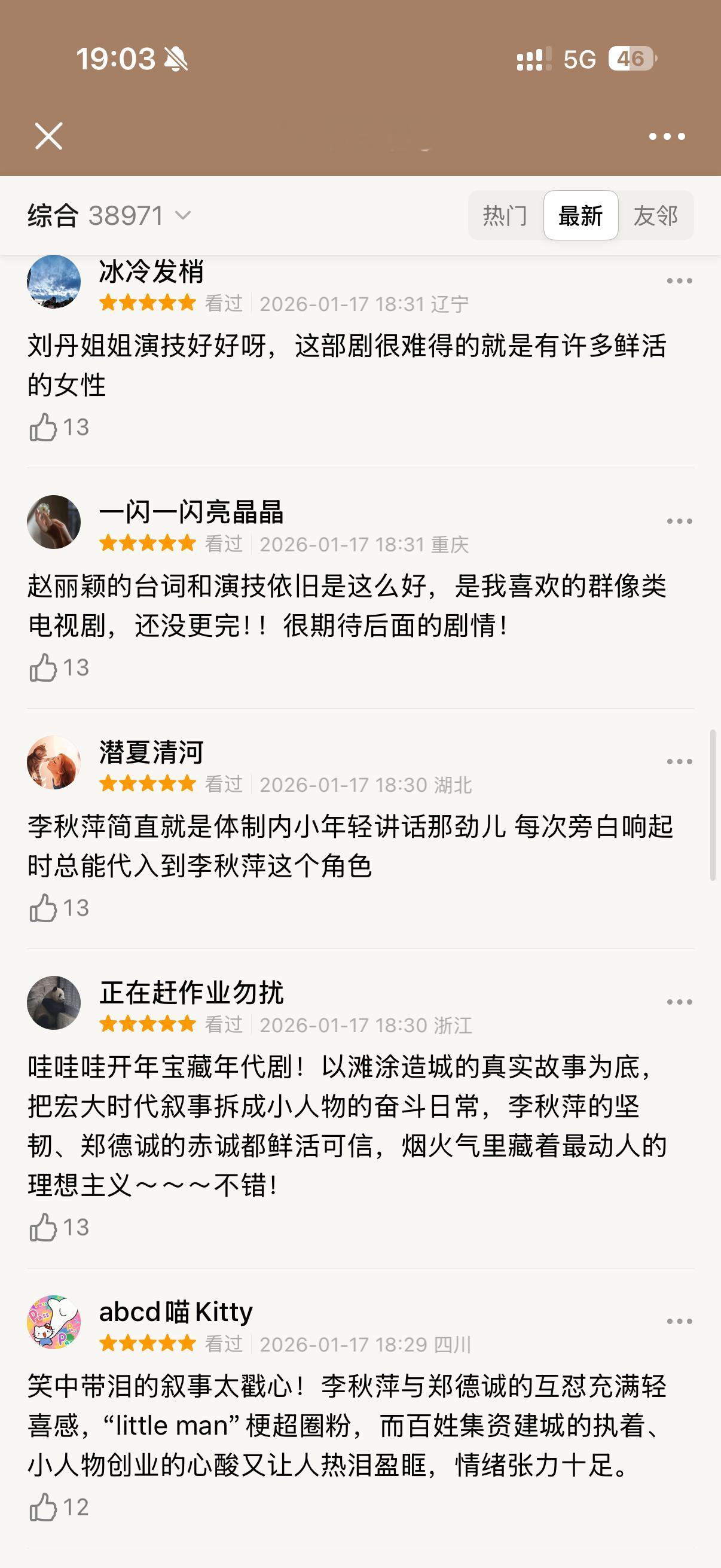 小丽新剧齐刷刷的五星,怎么有点人机的感觉?