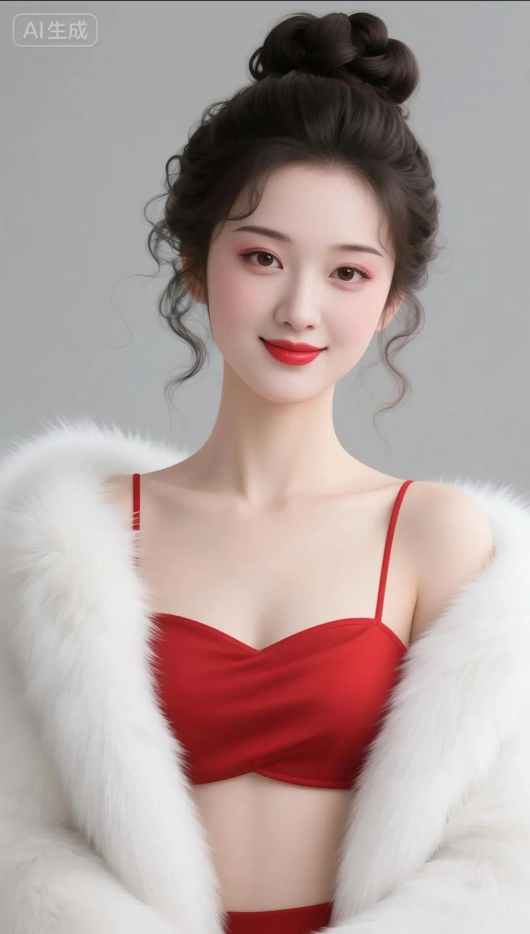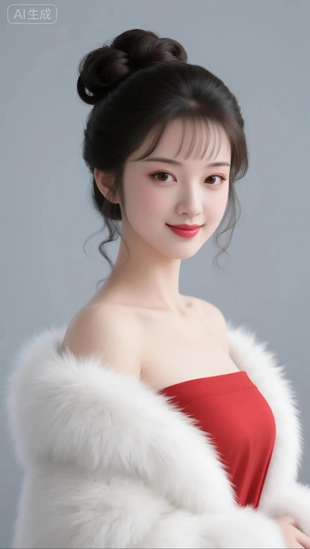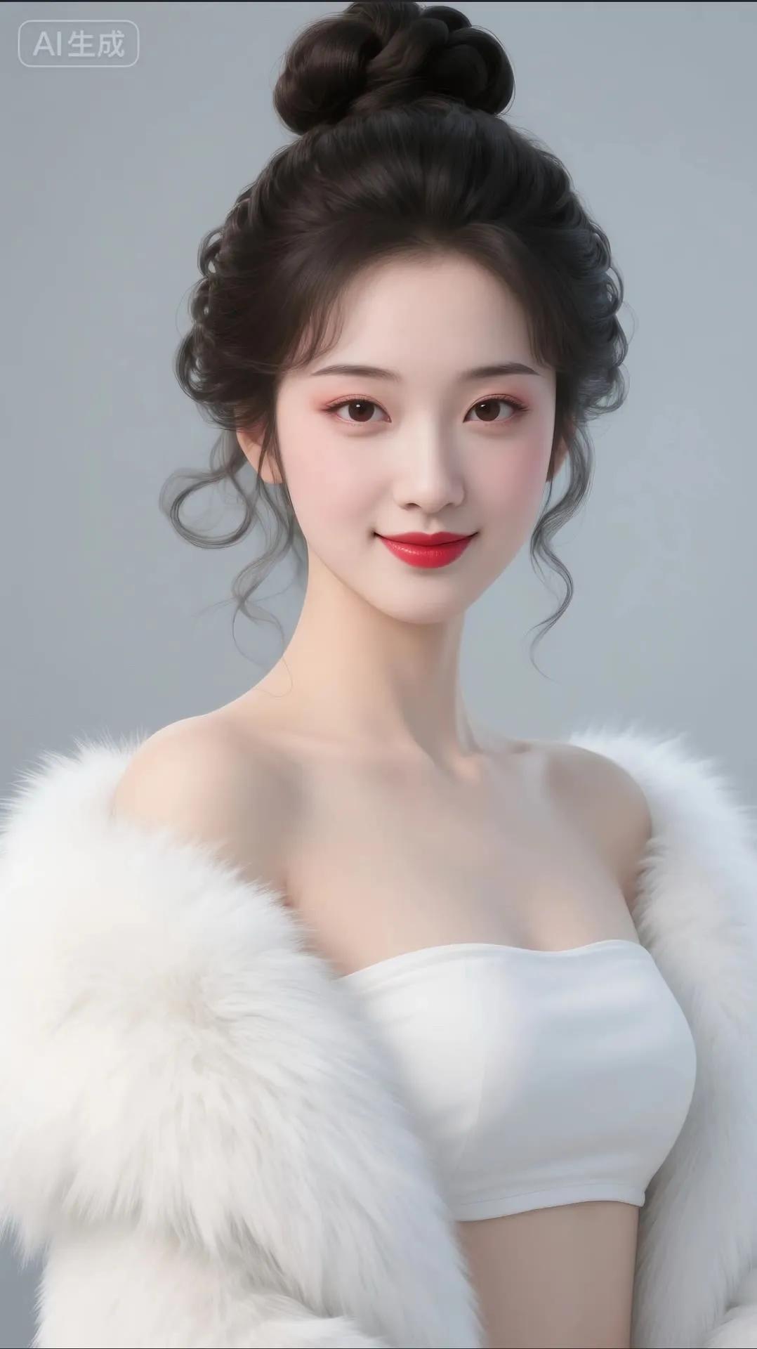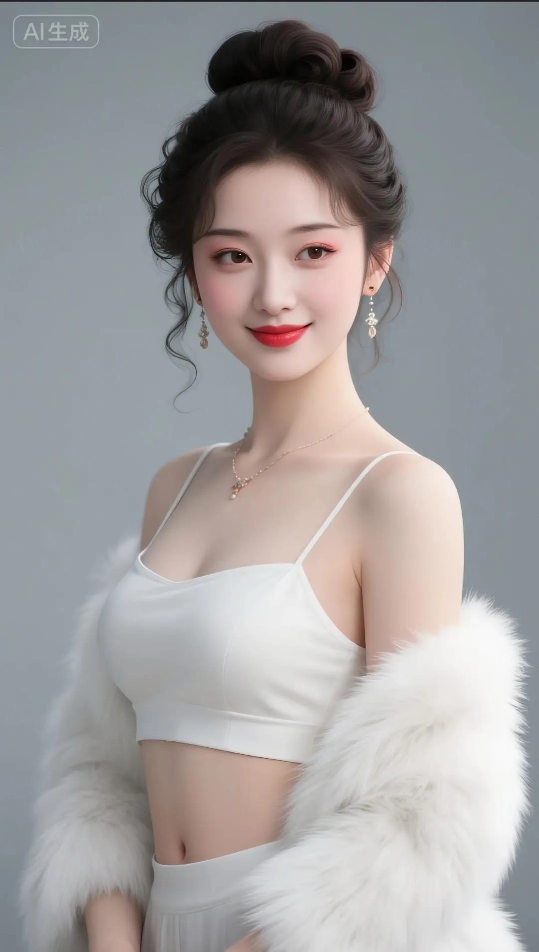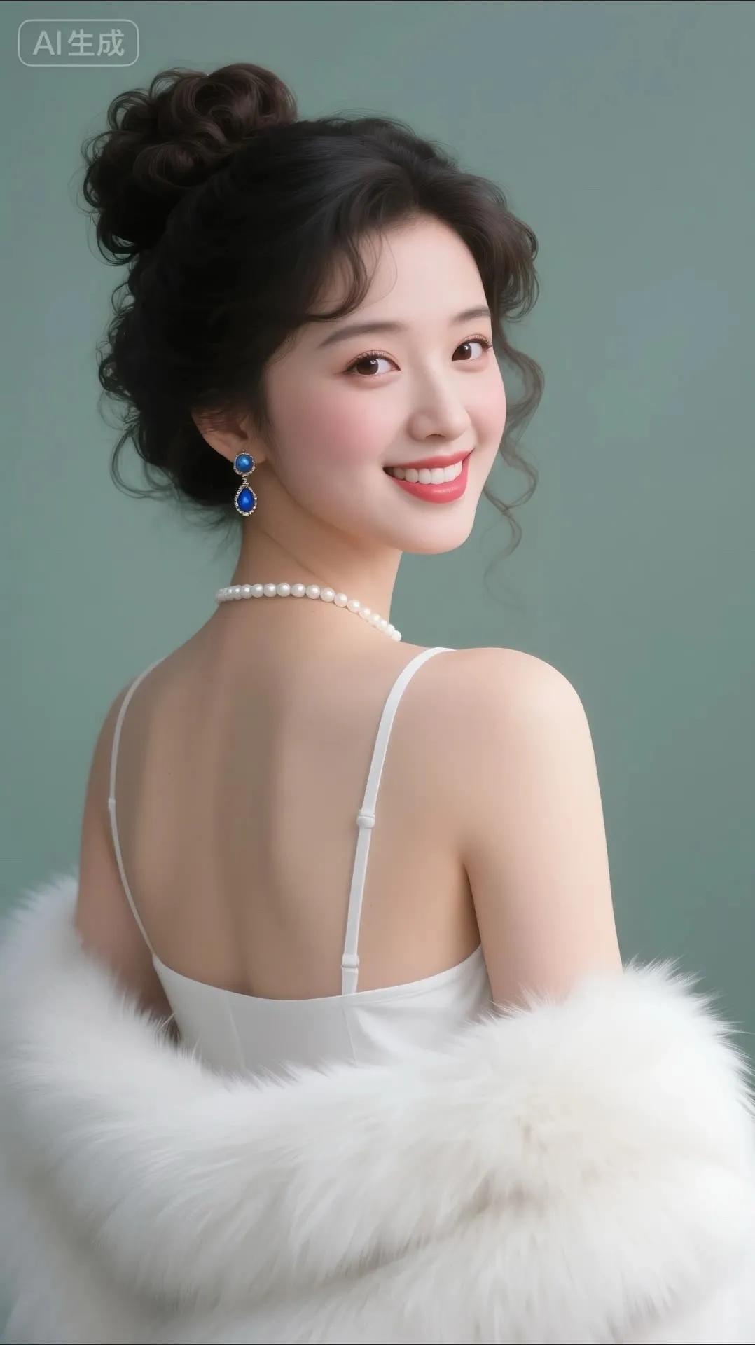 优雅白裙搭配毛绒外套,甜美笑容,尽显温柔气质!
