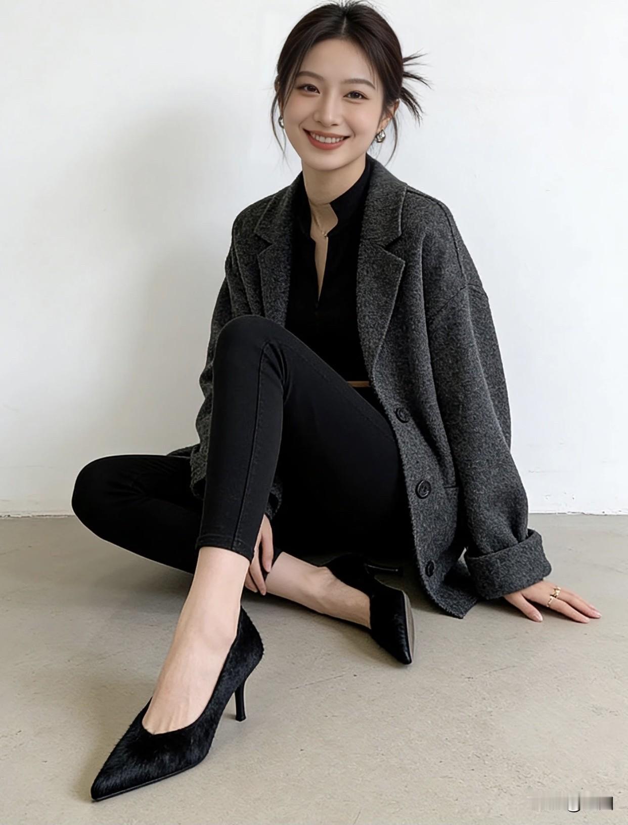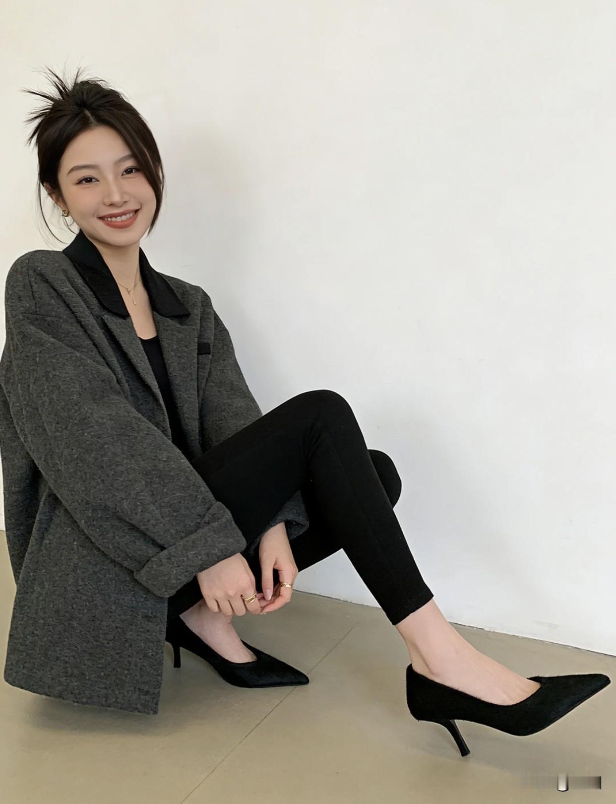 什么样的鞋子最容易穿出高级感优雅气质穿搭,灰色大衣搭配黑色高跟鞋,简约而不失时尚!👠💃