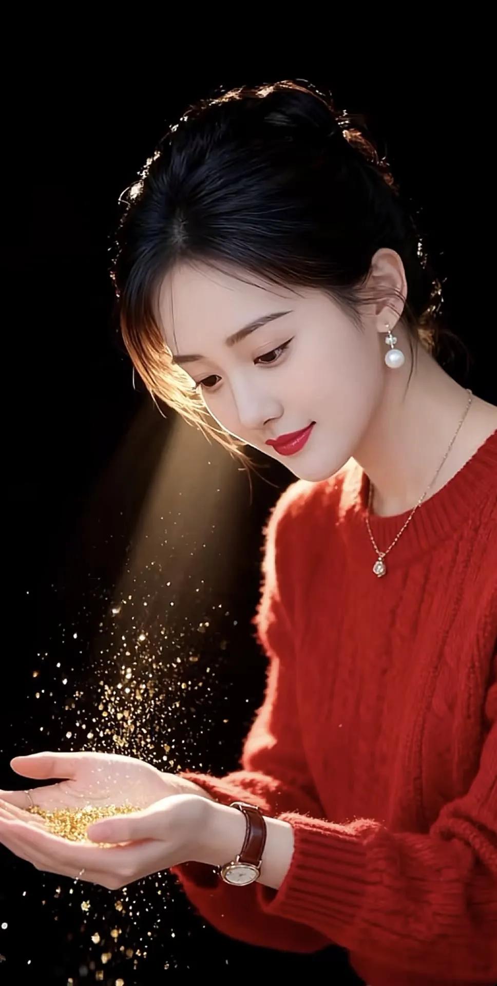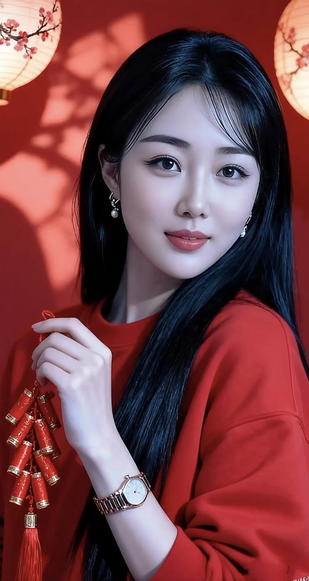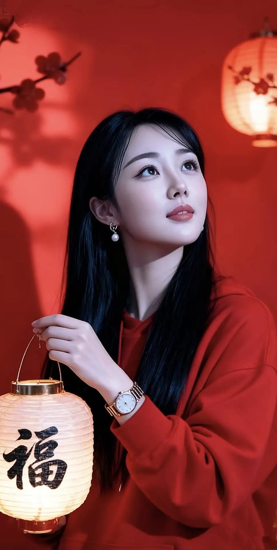 红衣少女与灯笼相伴,绽放新年光彩!🌸迷人的微笑