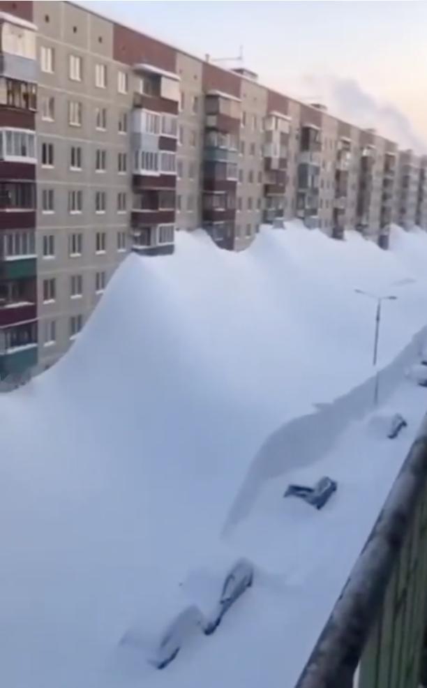 【看起来俄罗斯所有的雪都落在了堪察加半岛上。 在一些地区,积雪已经达到四楼甚至五楼的高度。】