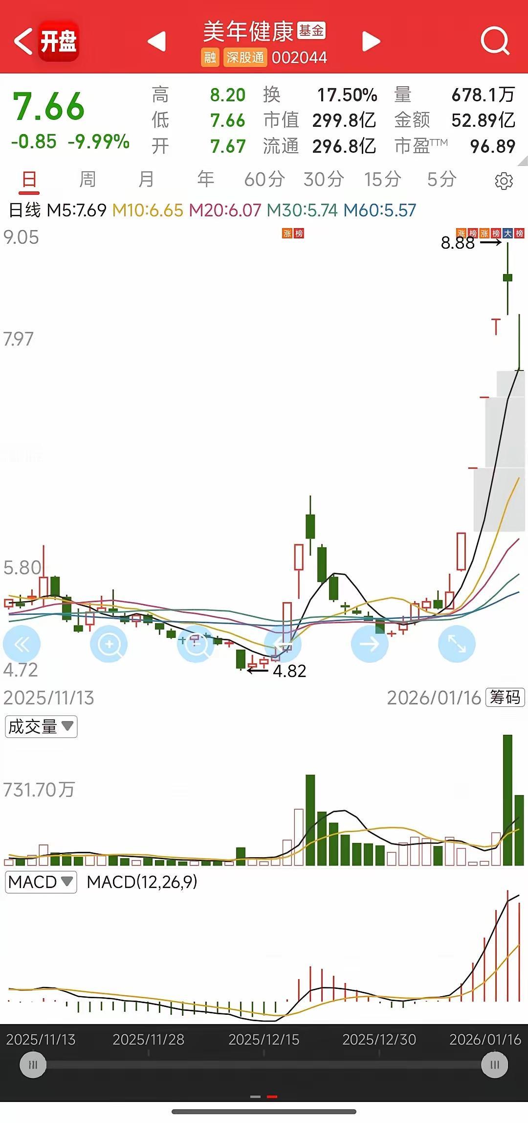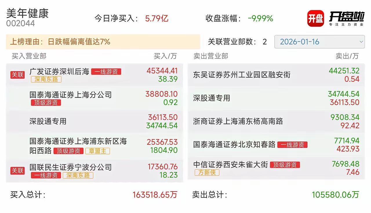 大佬们在抄底美年健康,然而都被埋了。 龙虎榜大佬云集,净买入近 6 个亿。深南东路净买入 6 个亿,章盟主买了 2.5 亿,还有一个大佬买了 3.9 亿。 我是不懂,这种起来能买?前面量价异动走了个N形,就是吸完筹异动带洗盘,主力已赚了一波,后面一字顶主升加速,中间缺乏带量换手,属于典型的吃独食,这种再打开,基本就是主货了。除非在高位又均衡堆量换手,才有可能再走一波。明眼人一看,这种股不值得买